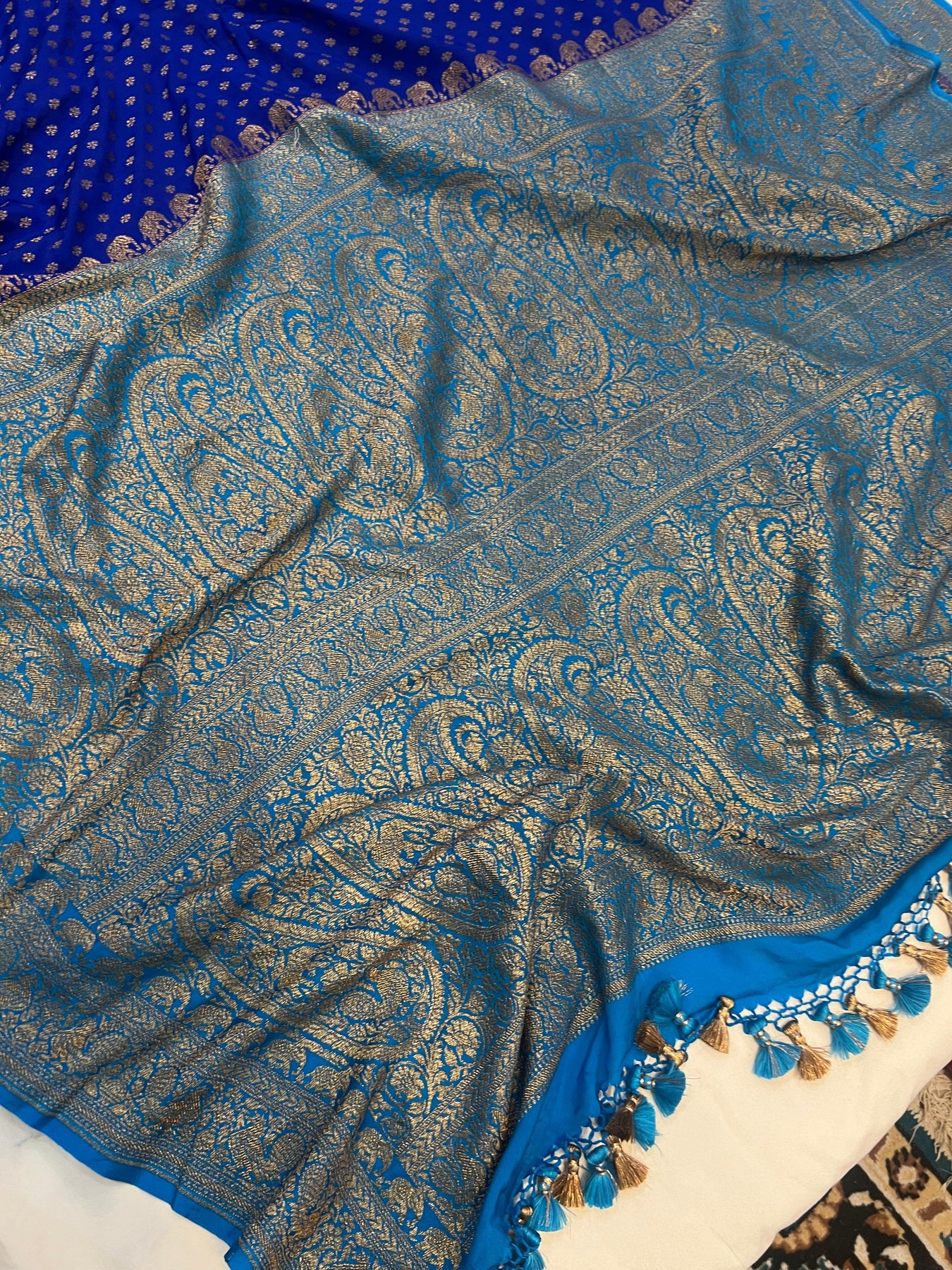 Royal Blue Pure Banarasi Khaddi Crepe Silk Saree