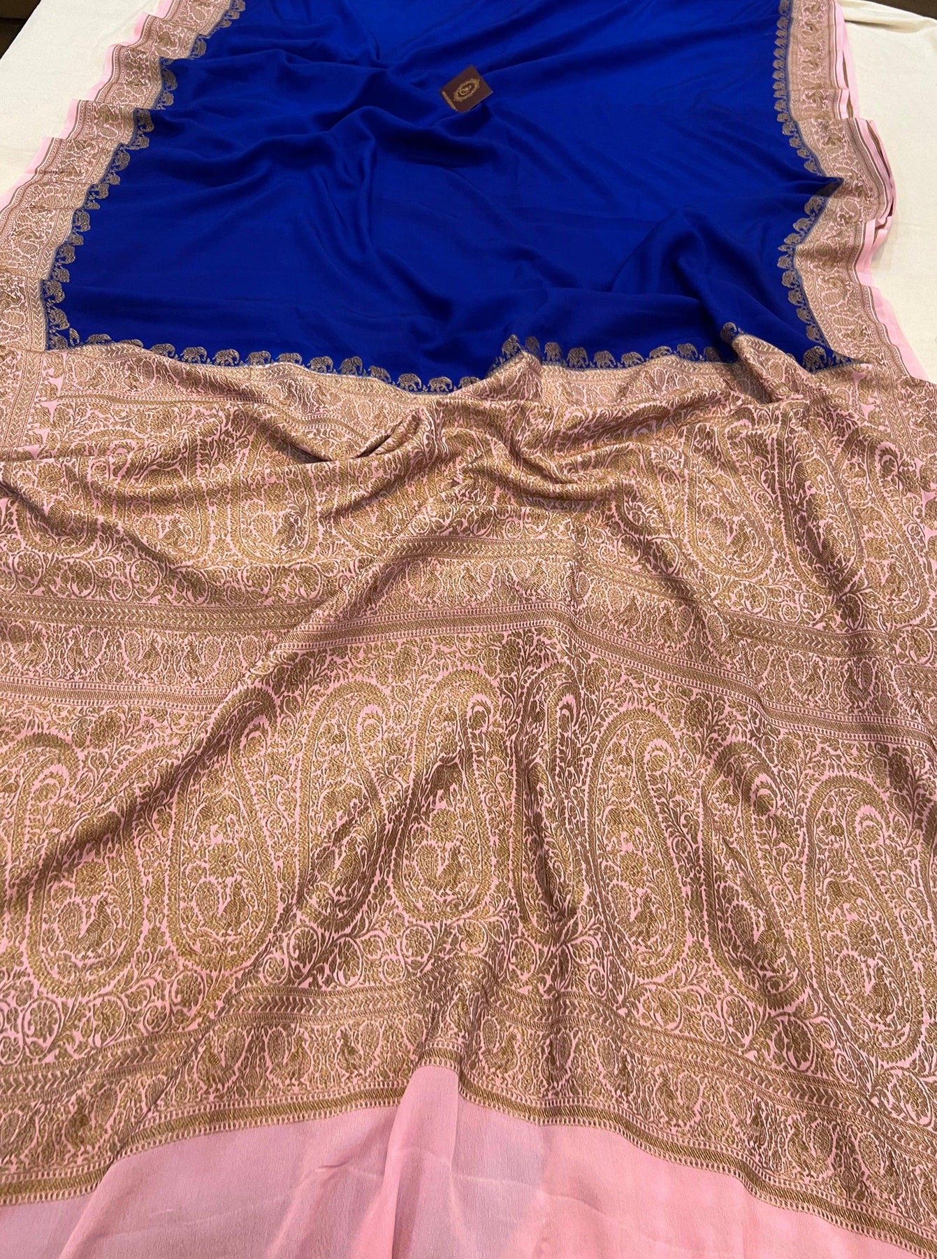 Royal Blue Pure Banarasi Khaddi Crepe Silk Saree
