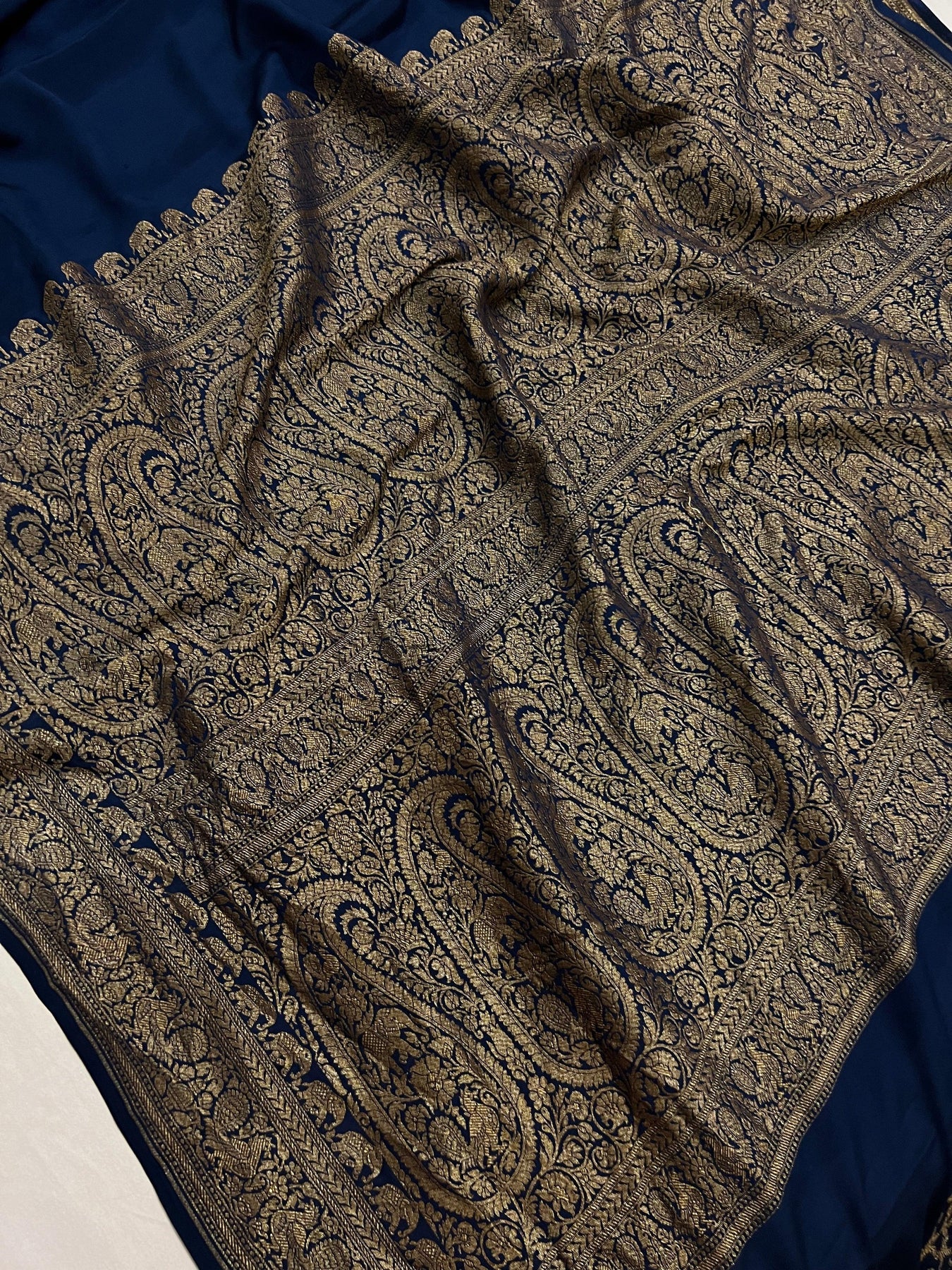 Teal Pure Banarasi Khaddi Crepe Silk Saree