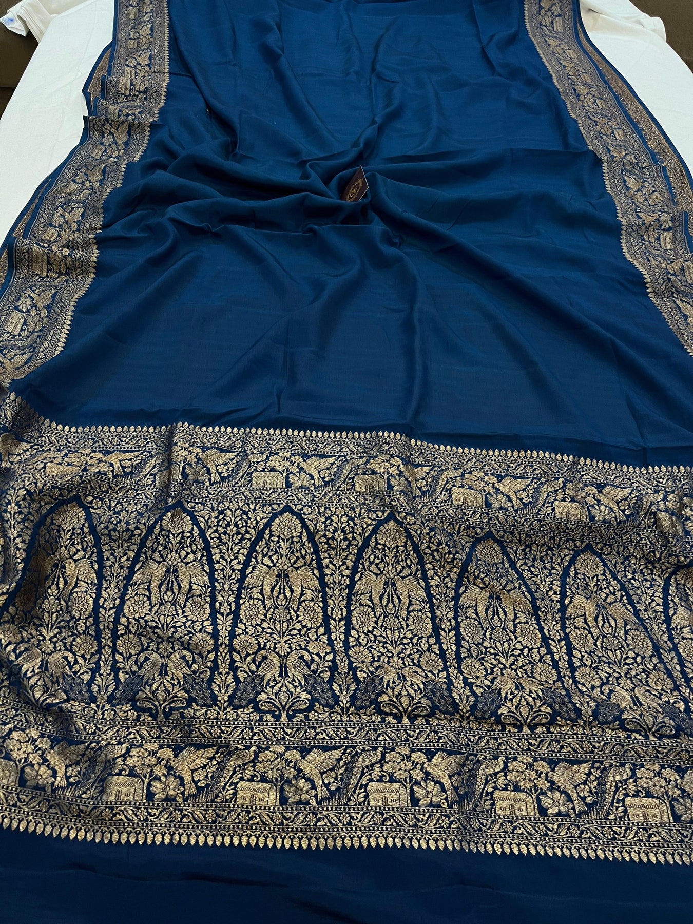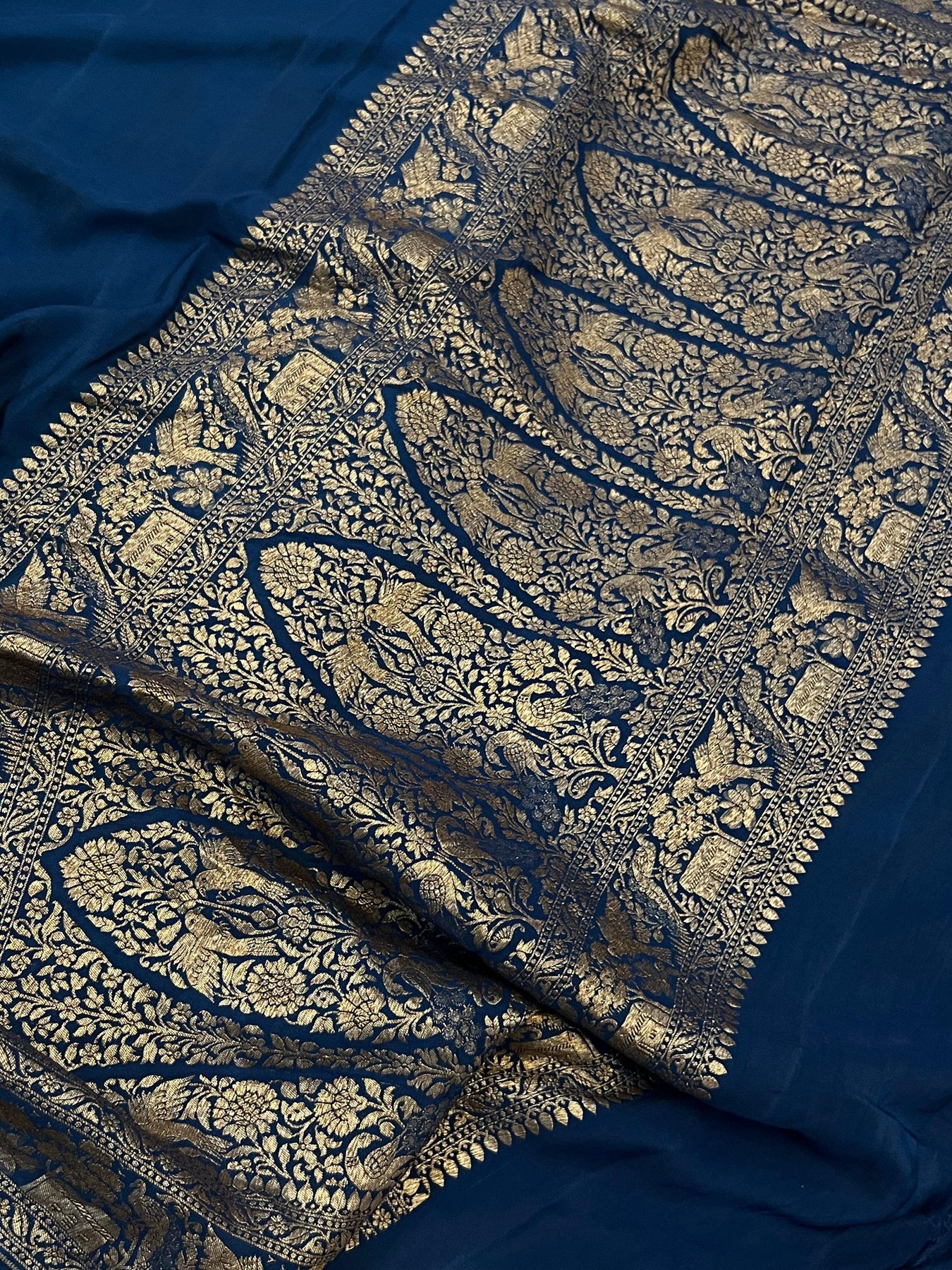 Teal Pure Banarasi Khaddi Crepe Silk Saree