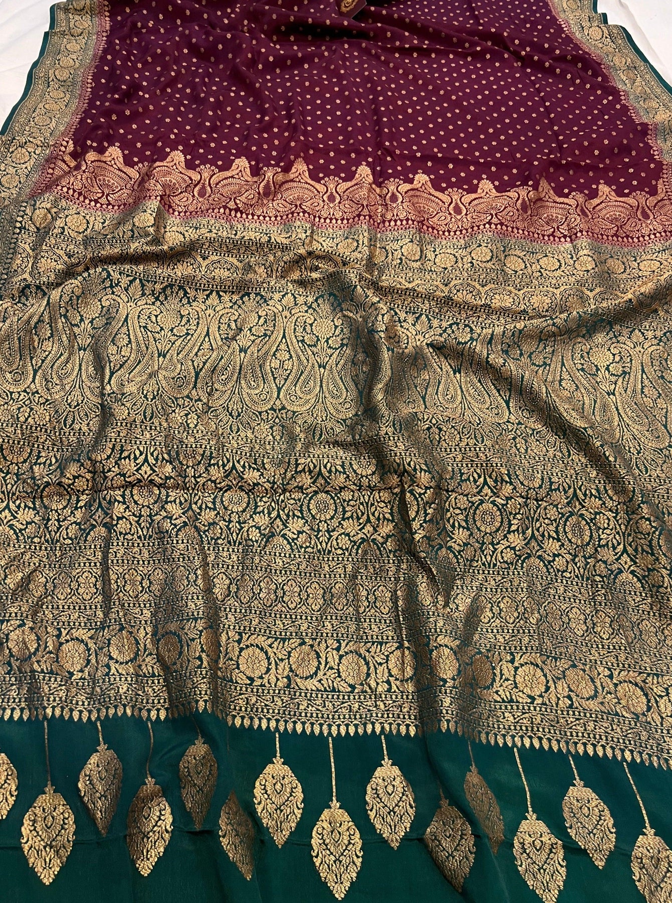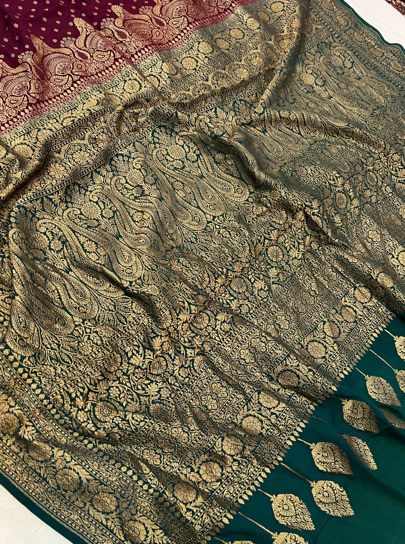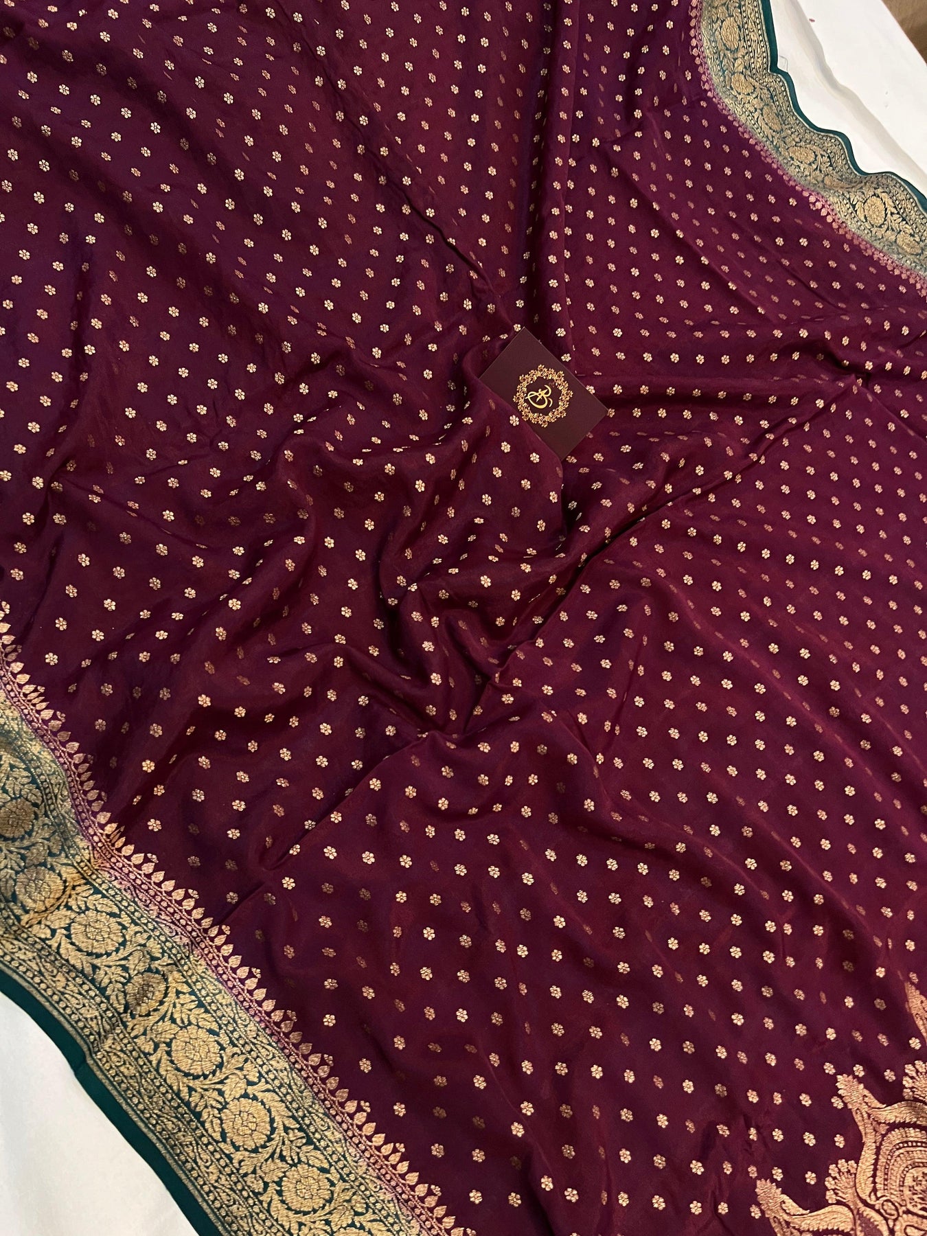 Wine Pure Banarasi Khaddi Crepe Silk Saree