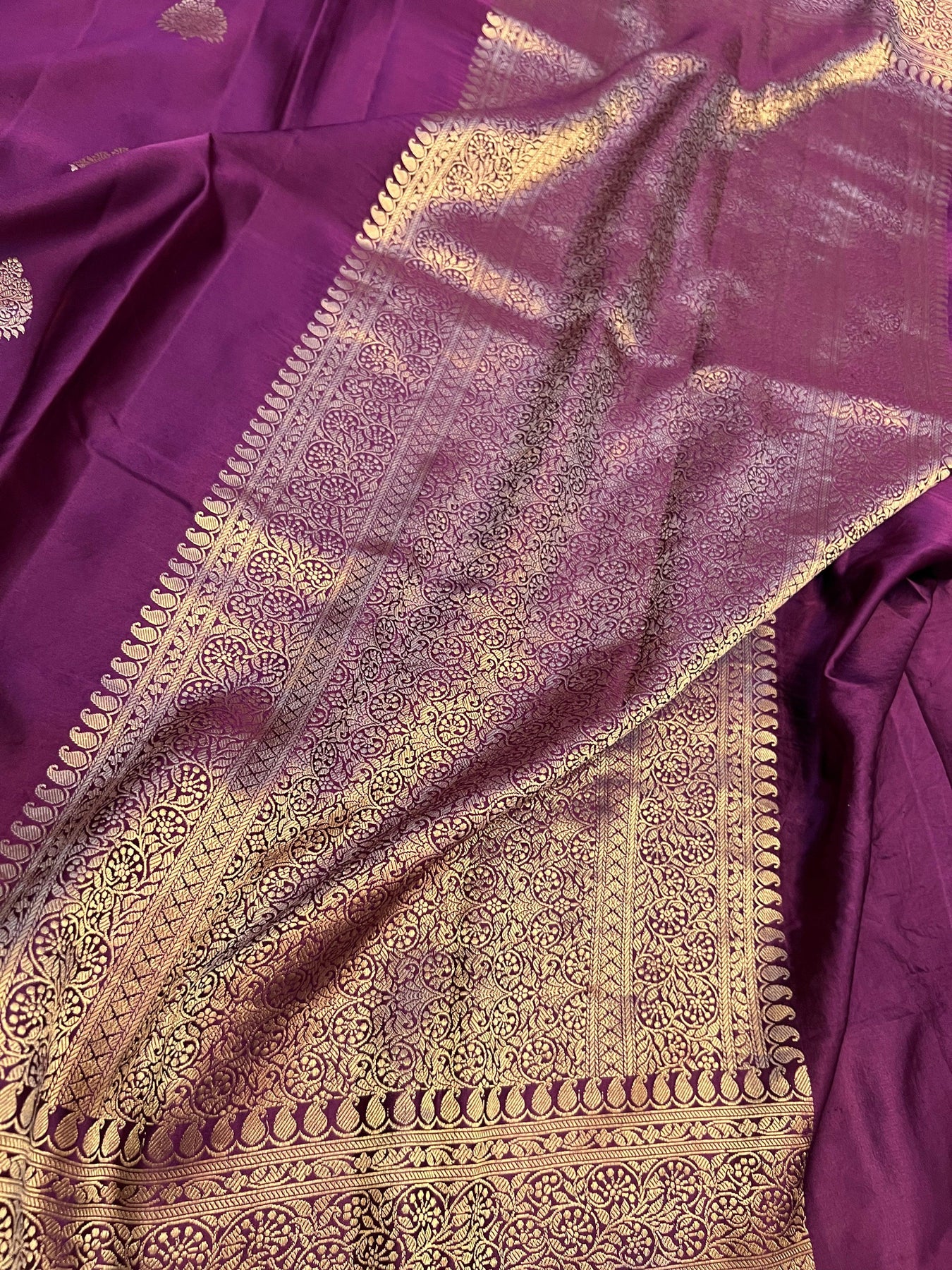 Wine Pure Mashru Silk Banarasi Handloom Saree with kadwa motifs