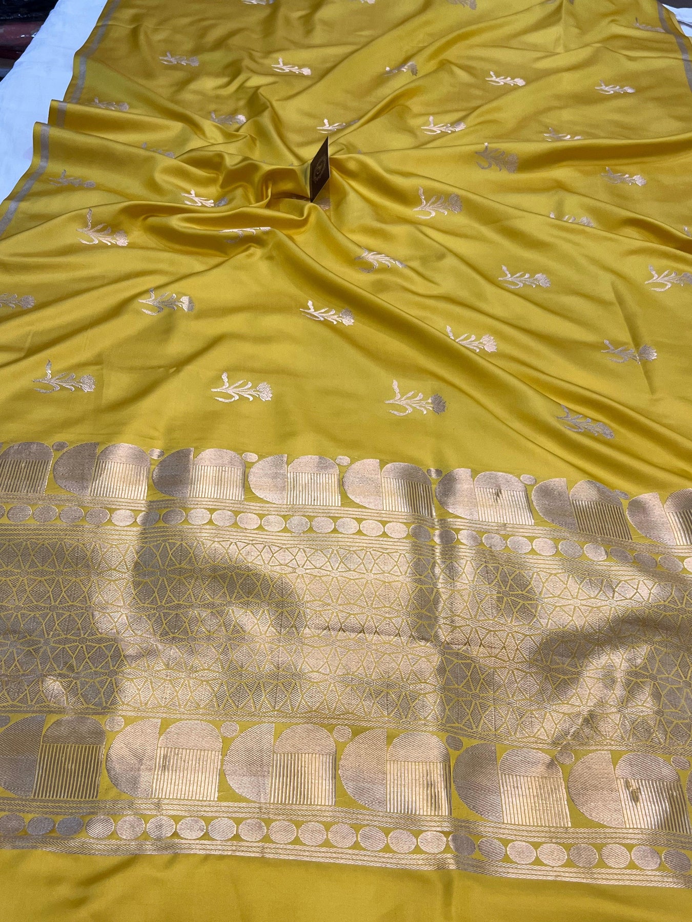 Yellow Pure Banarasi Handloom Mashru Silk Saree