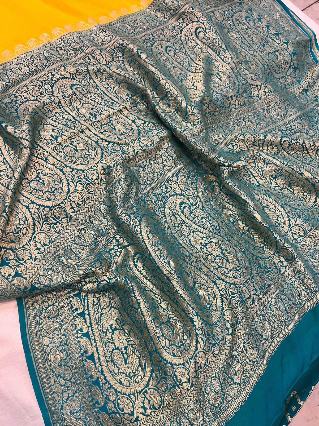 Yellow Pure Banarasi Khaddi Crepe Silk Saree