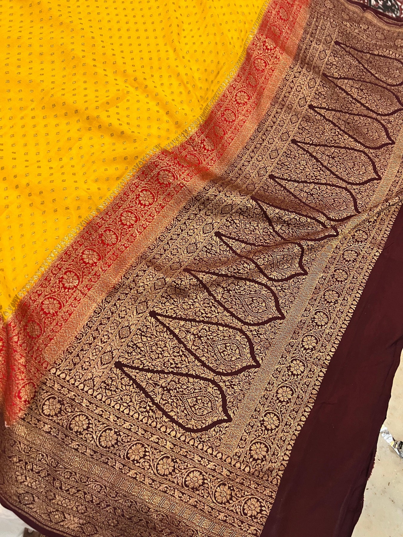 Yellow Pure Banarasi Khaddi Crepe Silk Saree