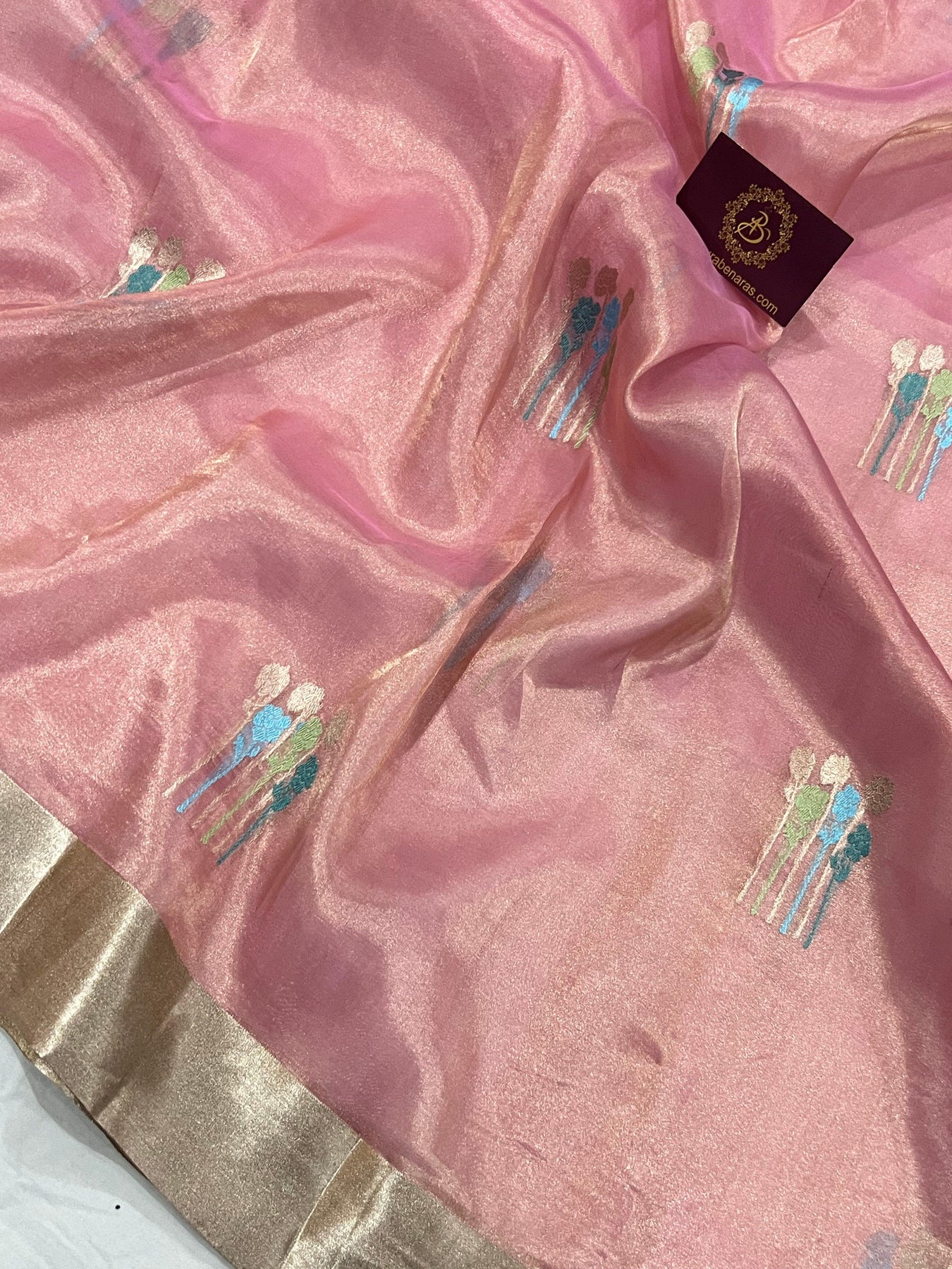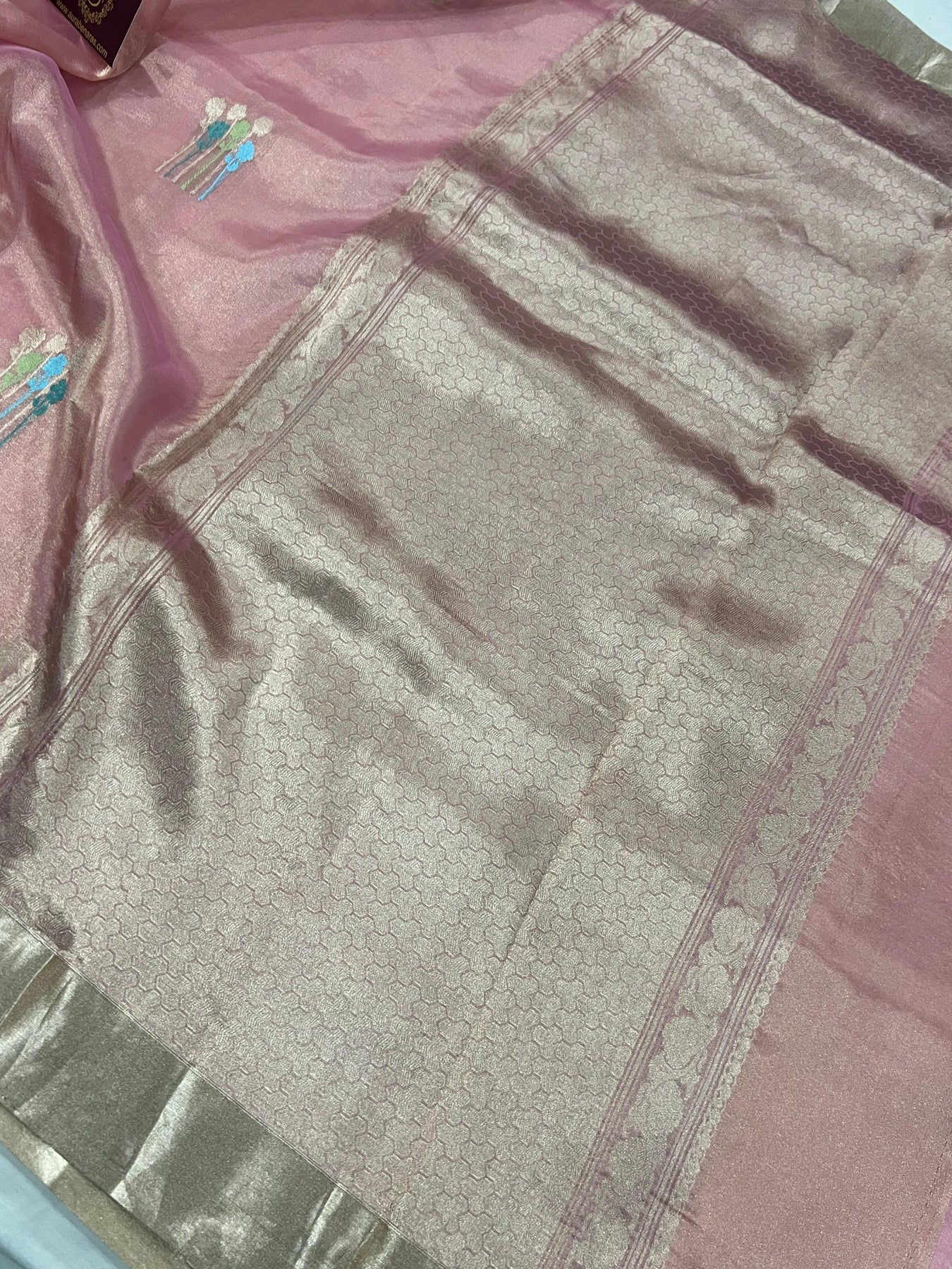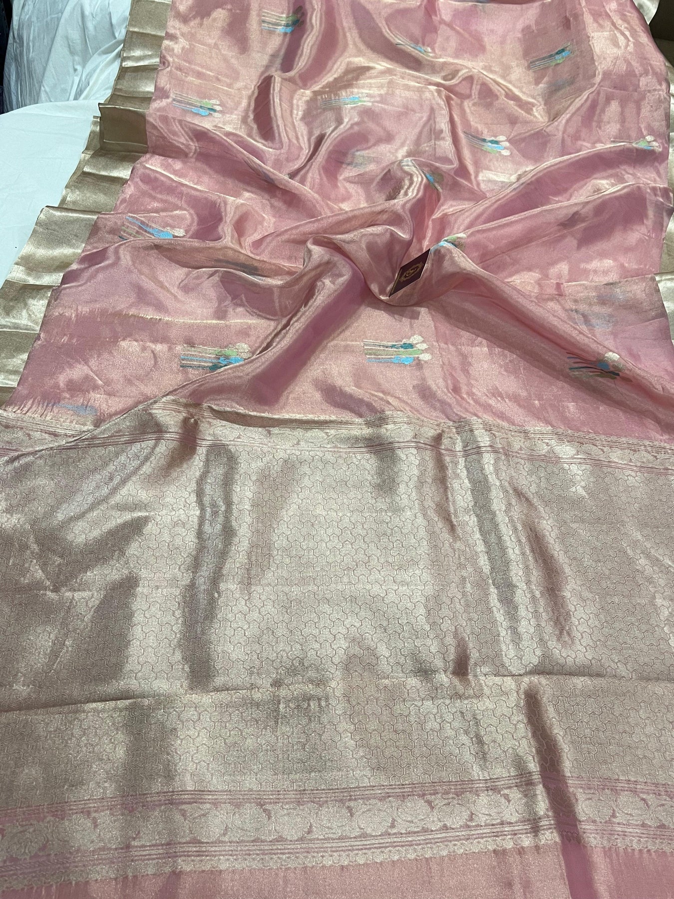 Pastel Pink Pure Banarasi Handloom Tissue Silk Saree