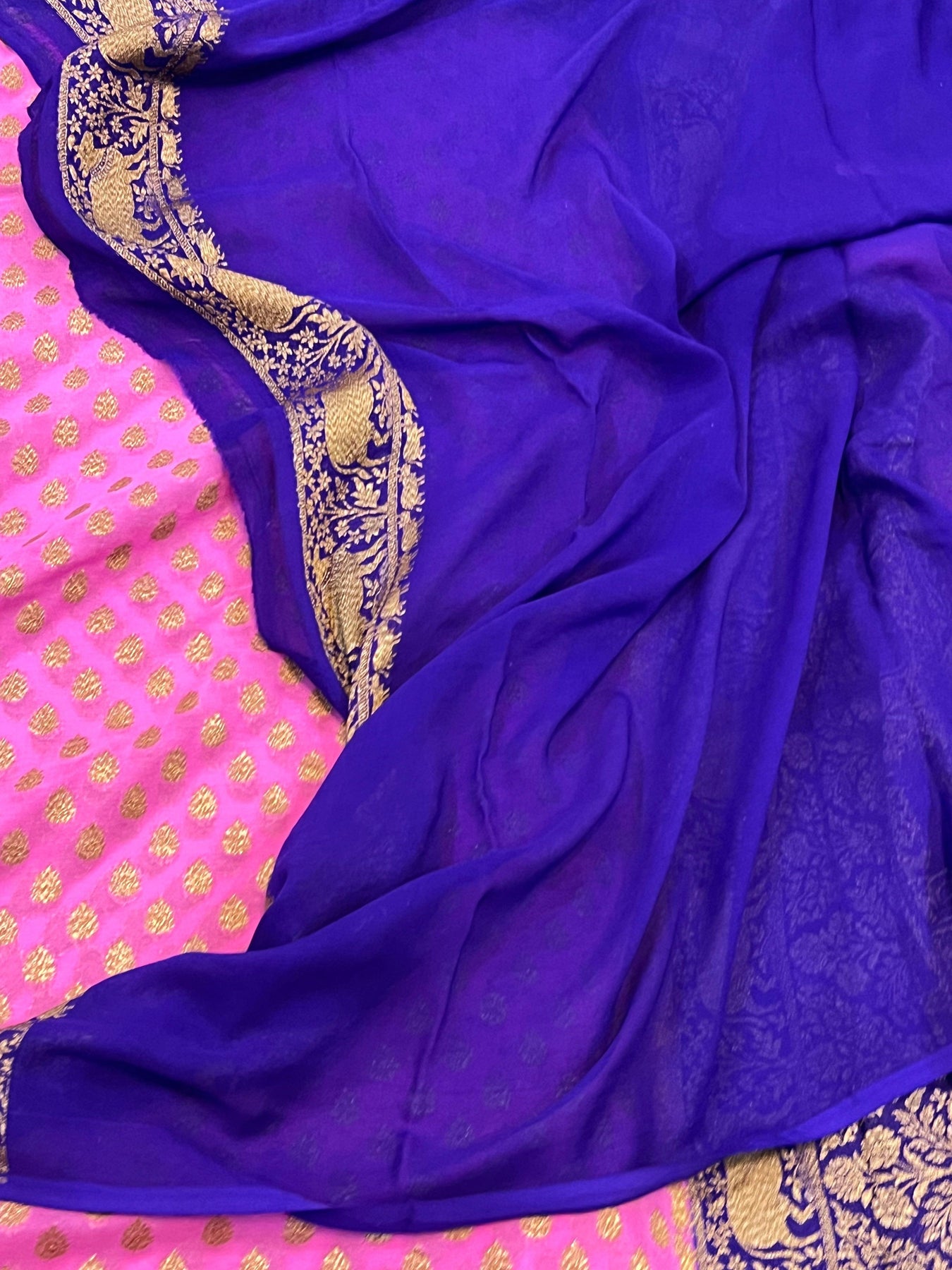 Baby Pink Banarasi Handloom Pure Khaddi Georgette Saree