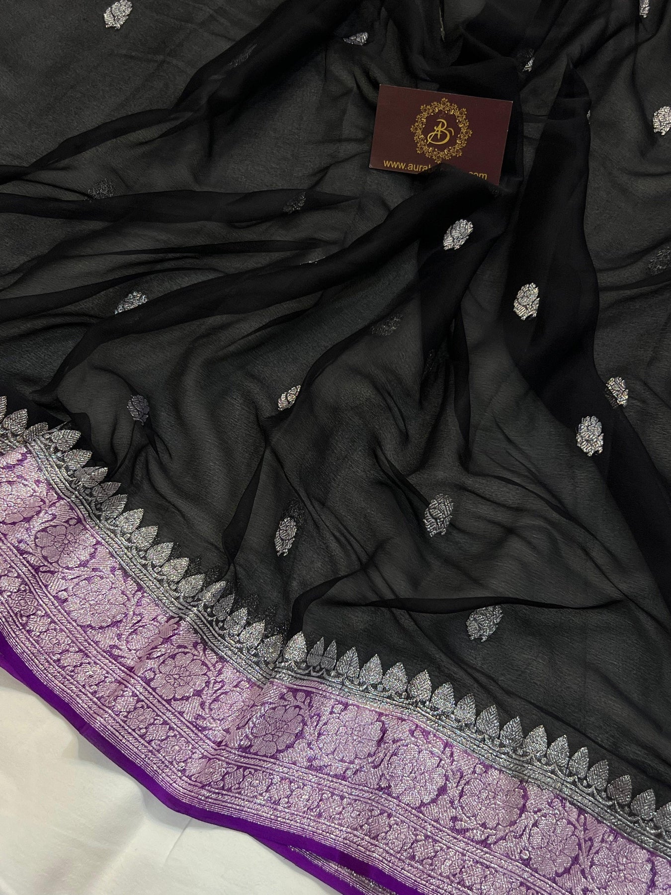 Black Khaddi Chiffon Banarasi Handloom Saree