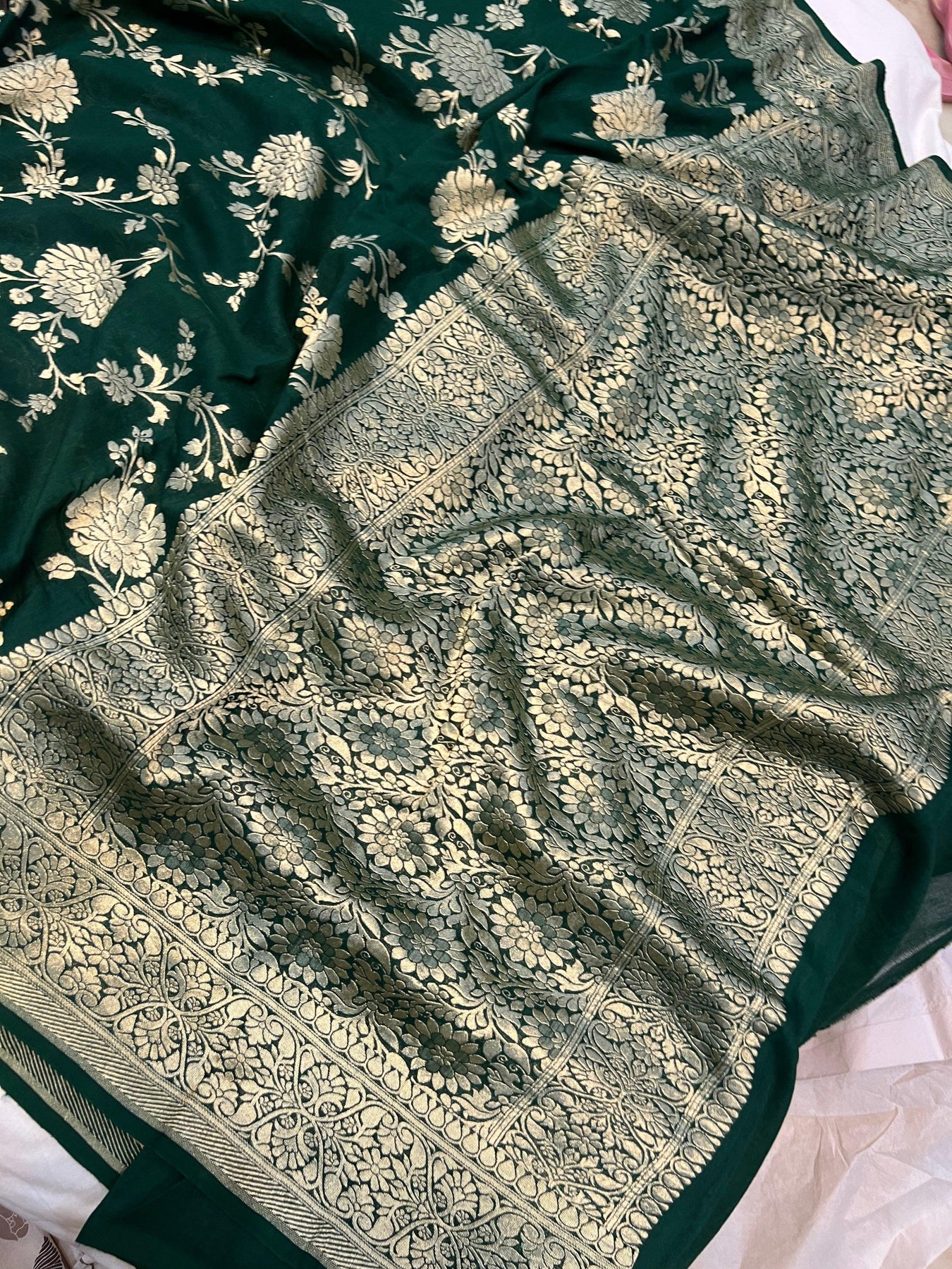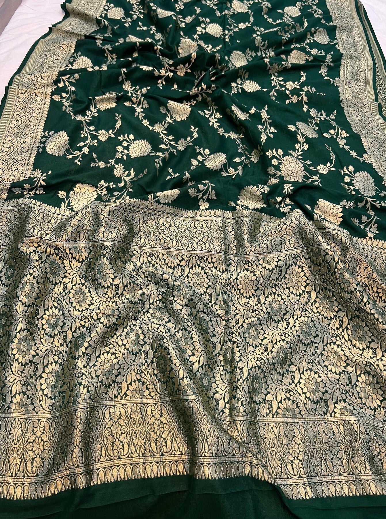 Bottle Green Banarasi Handloom Pure Moonga Georgette Saree