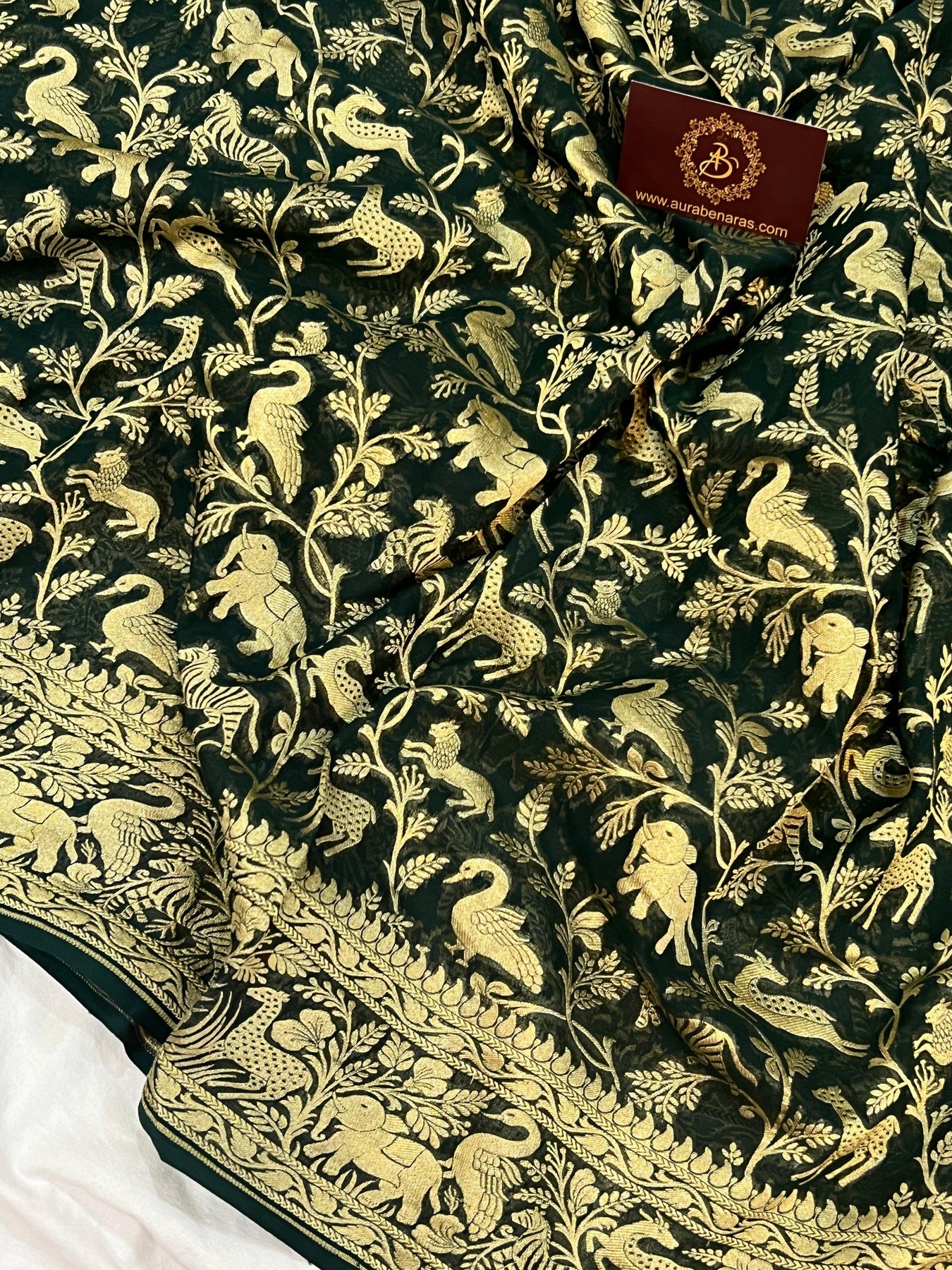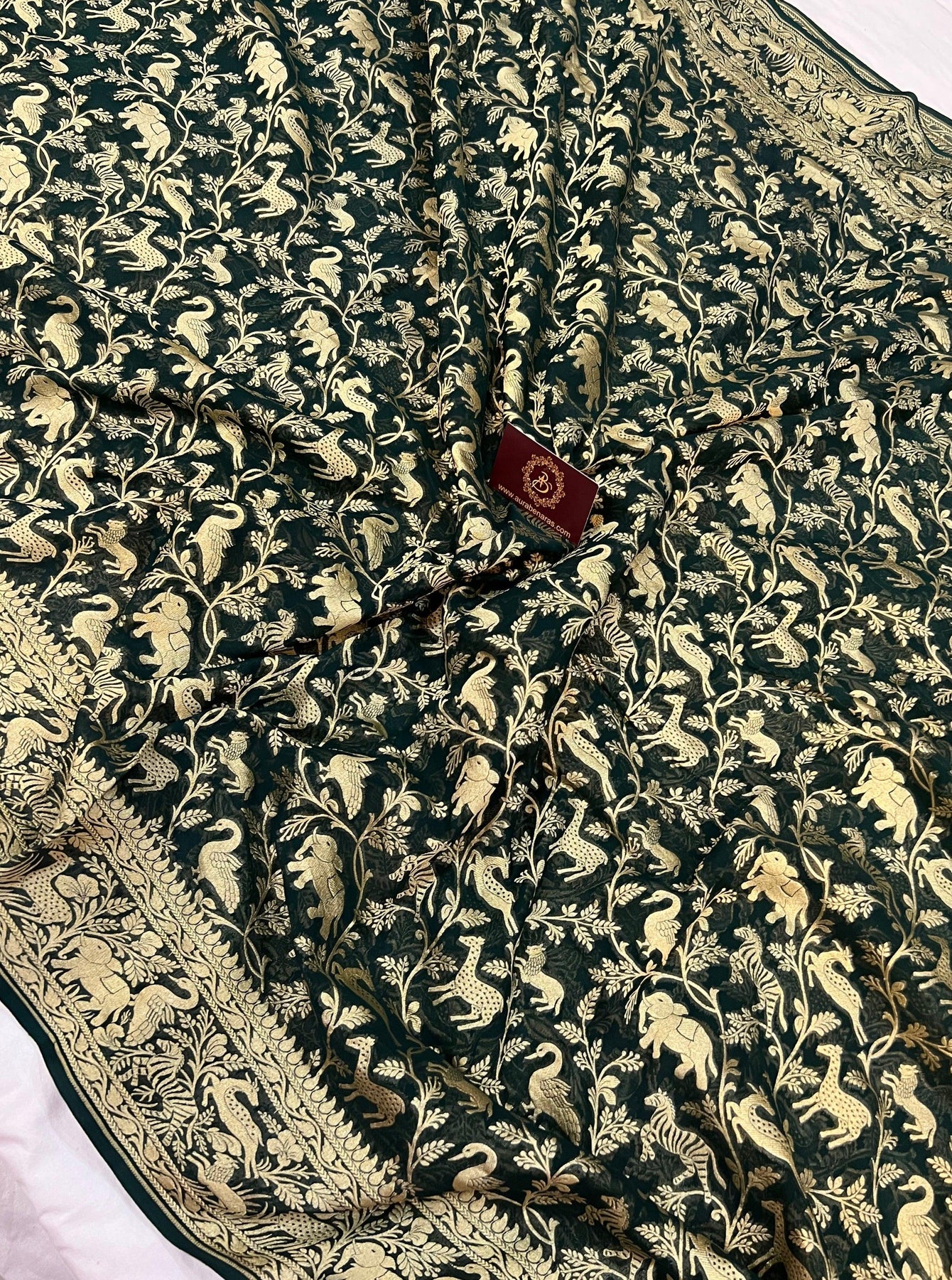 Bottle Green Pure Banarasi Khaddi Georgette Saree - Aura Benaras