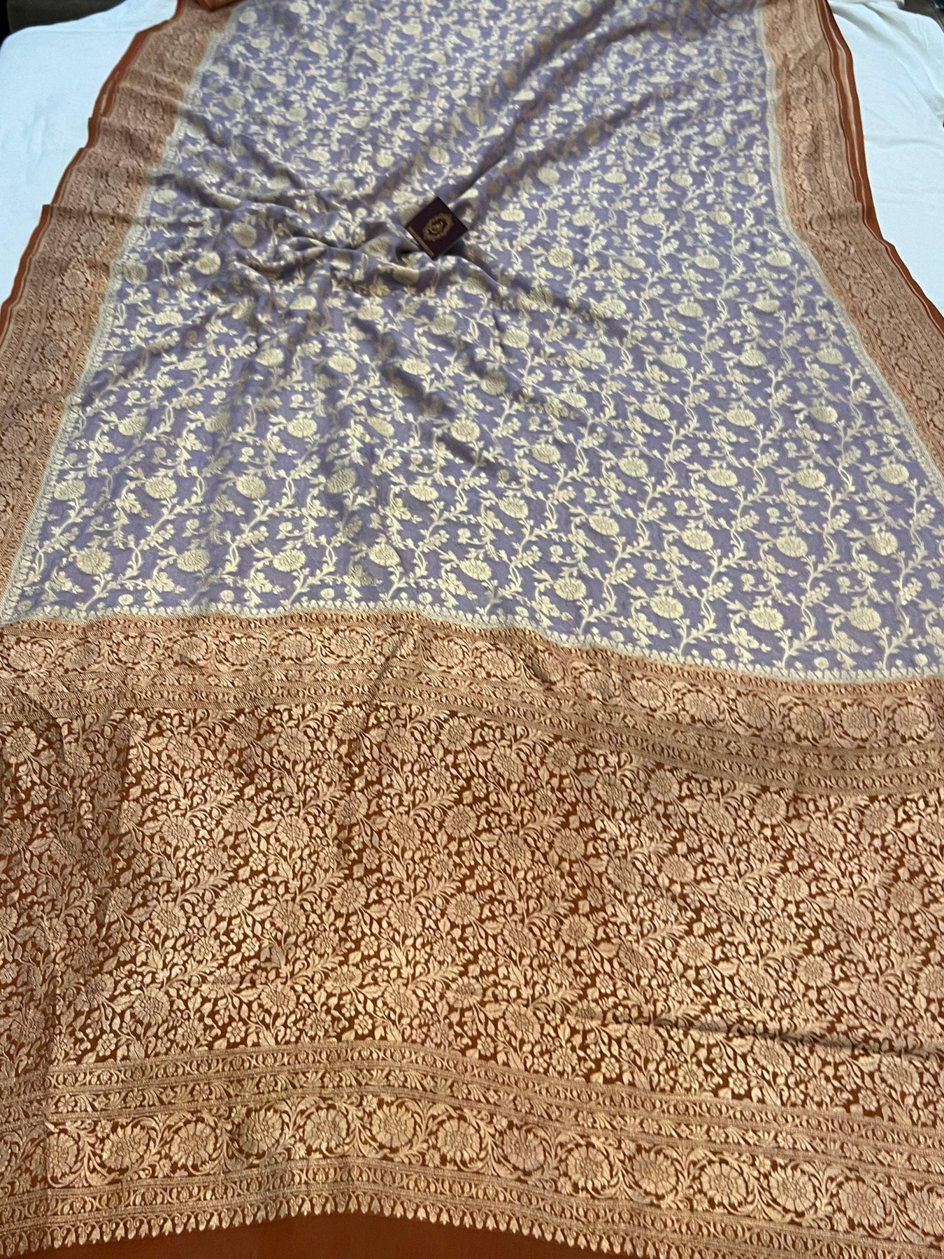 Dusty Grey Banarasi Pure Khaddi Georgette Saree