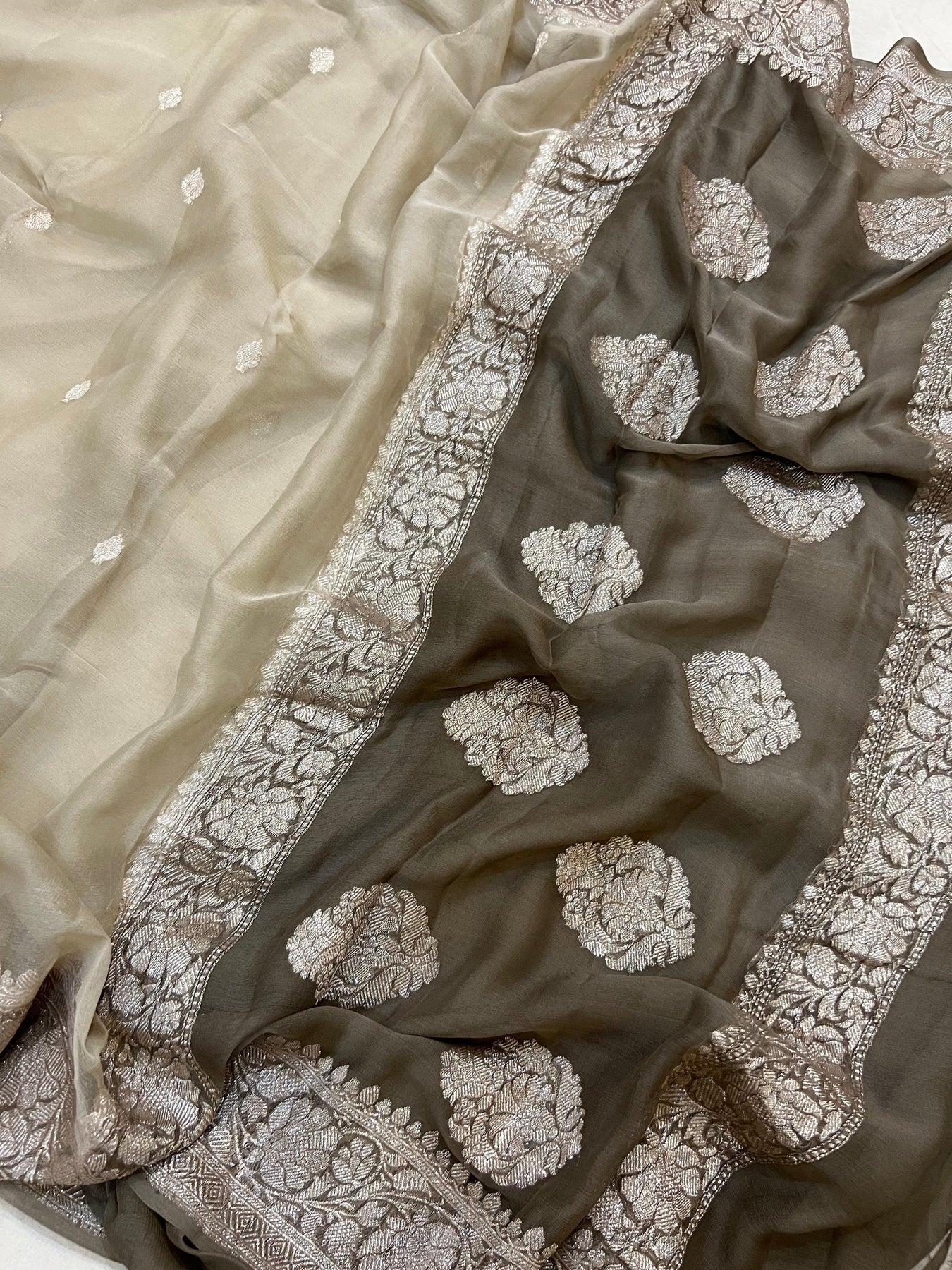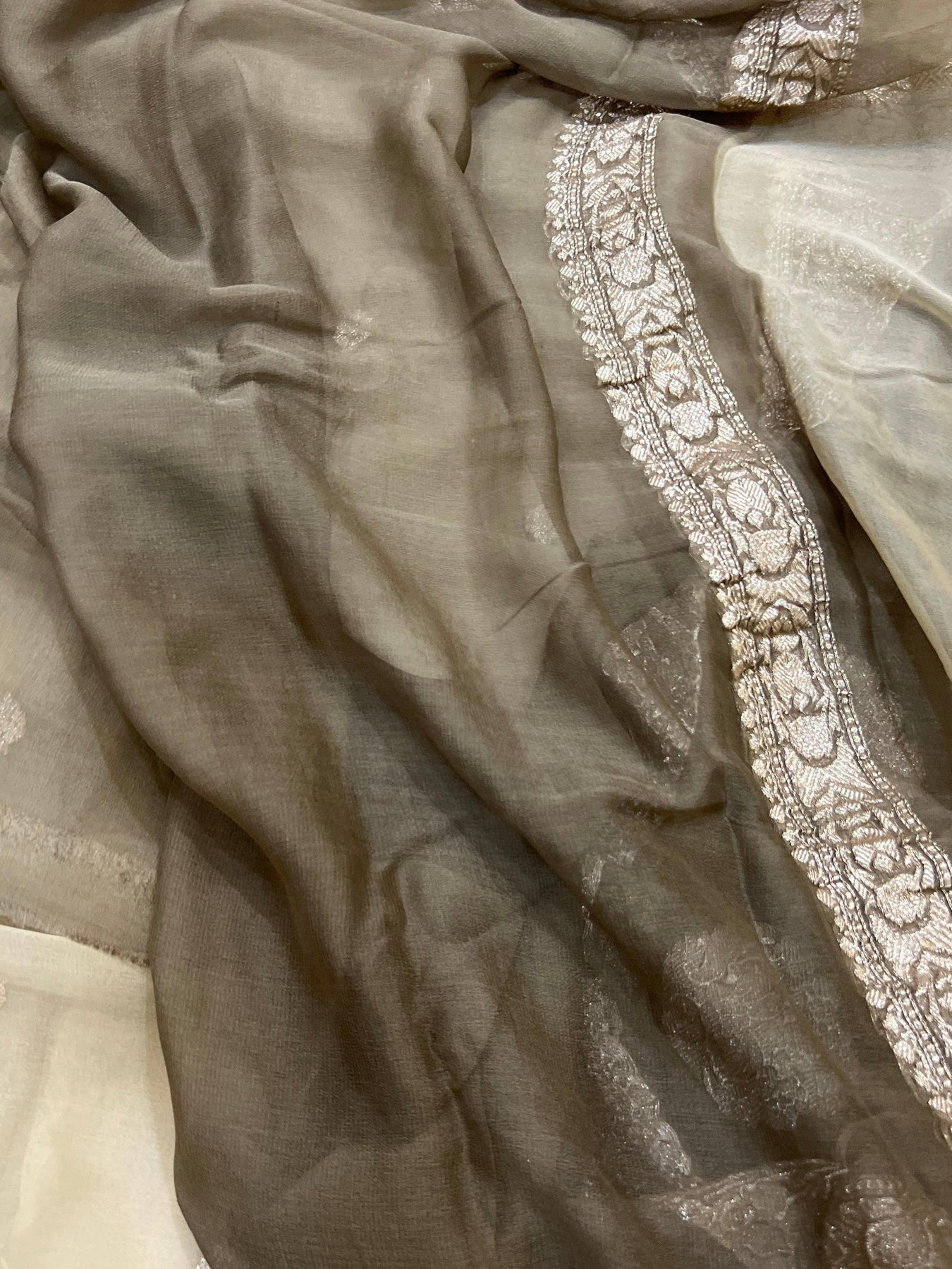 Light Grey Khaddi Chiffon Banarasi Handloom Saree