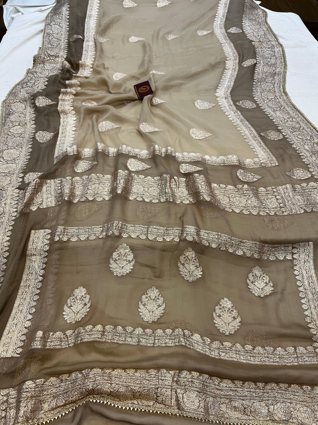 Light Grey Khaddi Chiffon Banarasi Handloom Saree