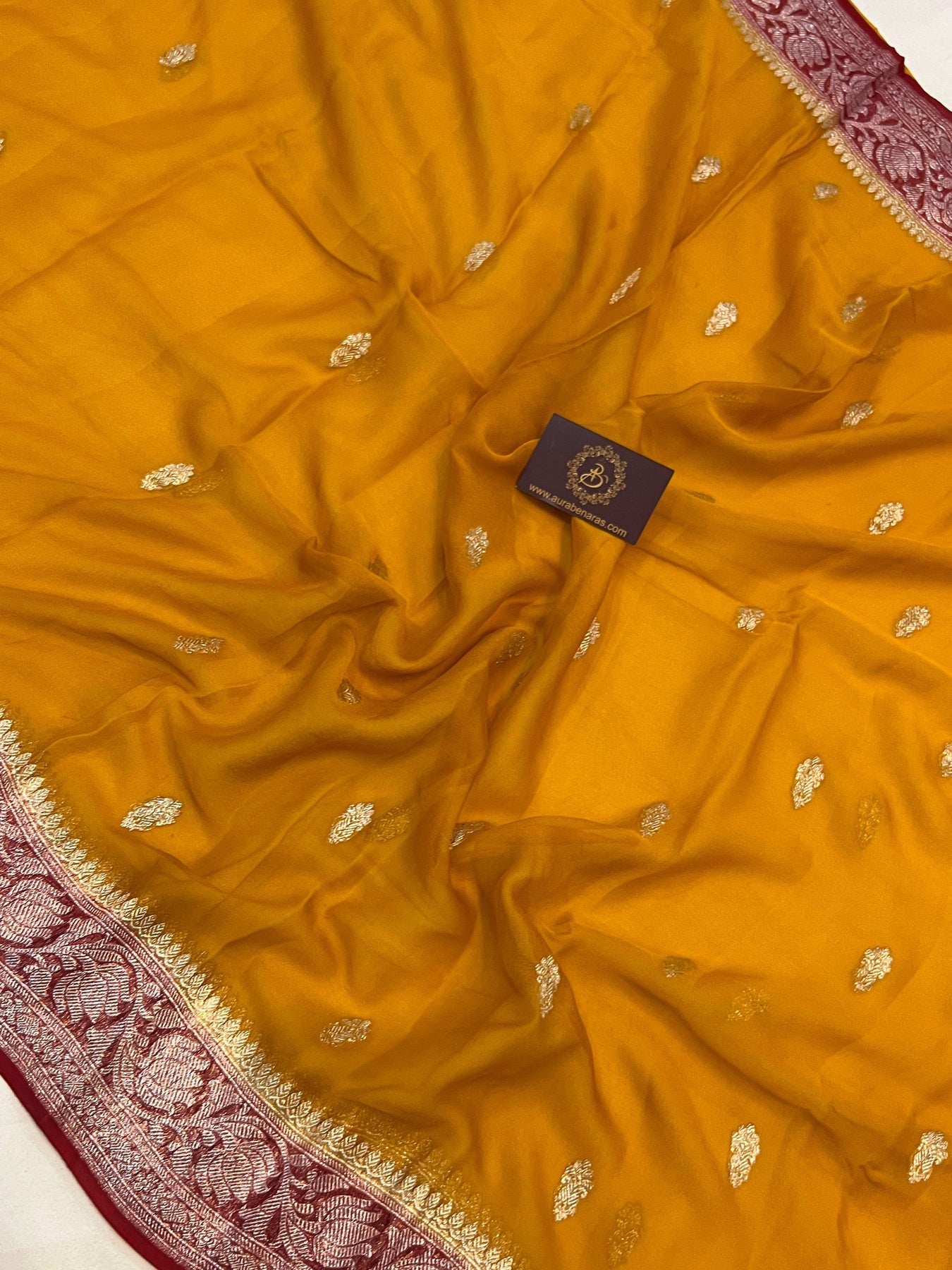 - Color - An enchanting Mustard yellow with scintillating red palla and border.