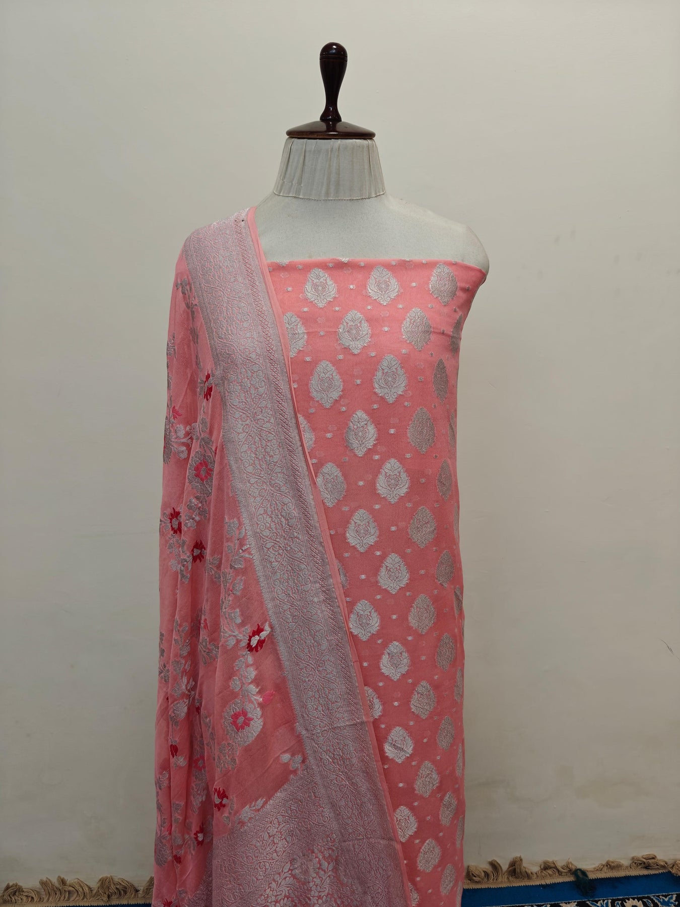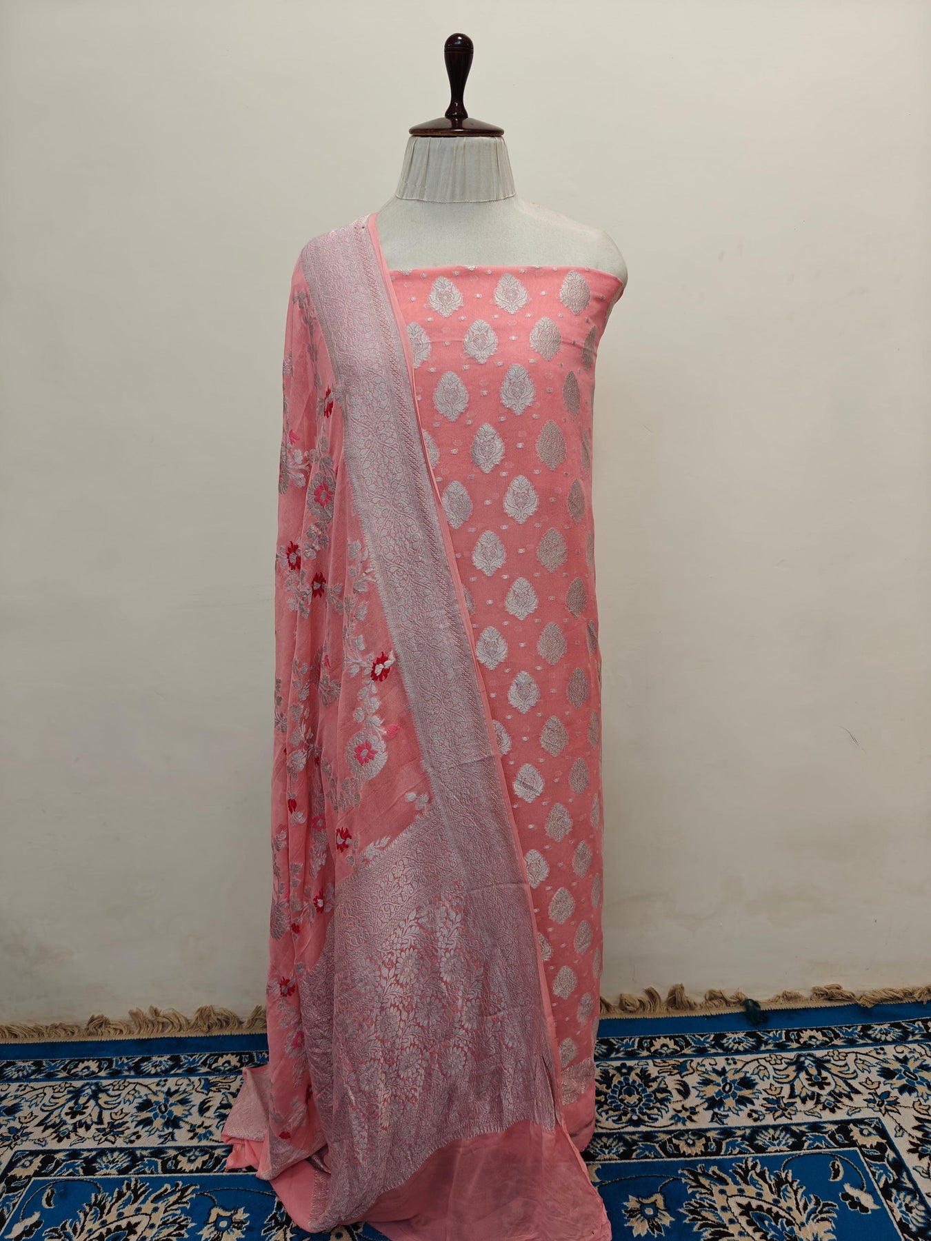 Peach Pure Khaddi Georgette Handloom Banarasi Suit