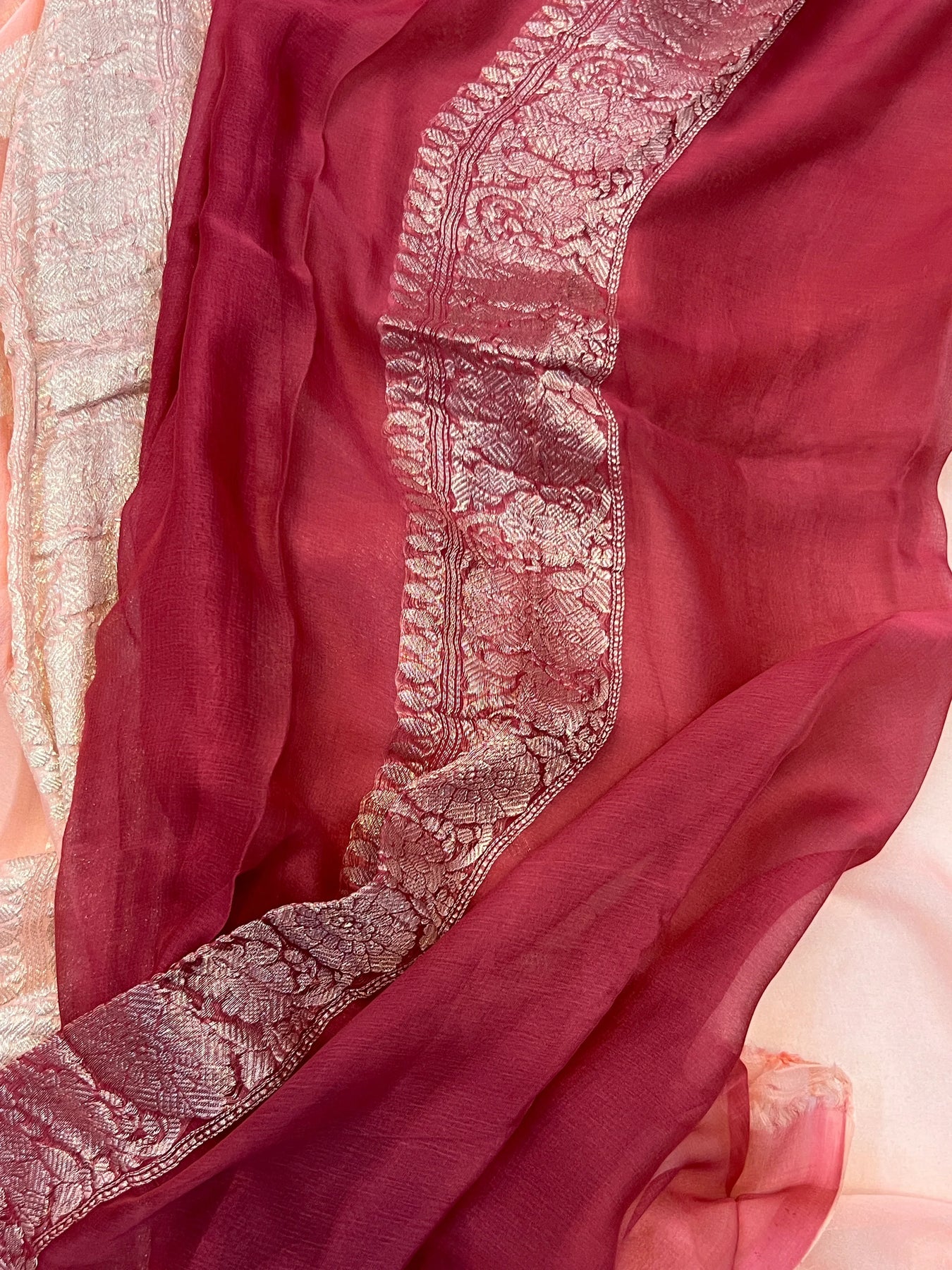 Peach Khaddi Chiffon Banarasi Handloom Saree