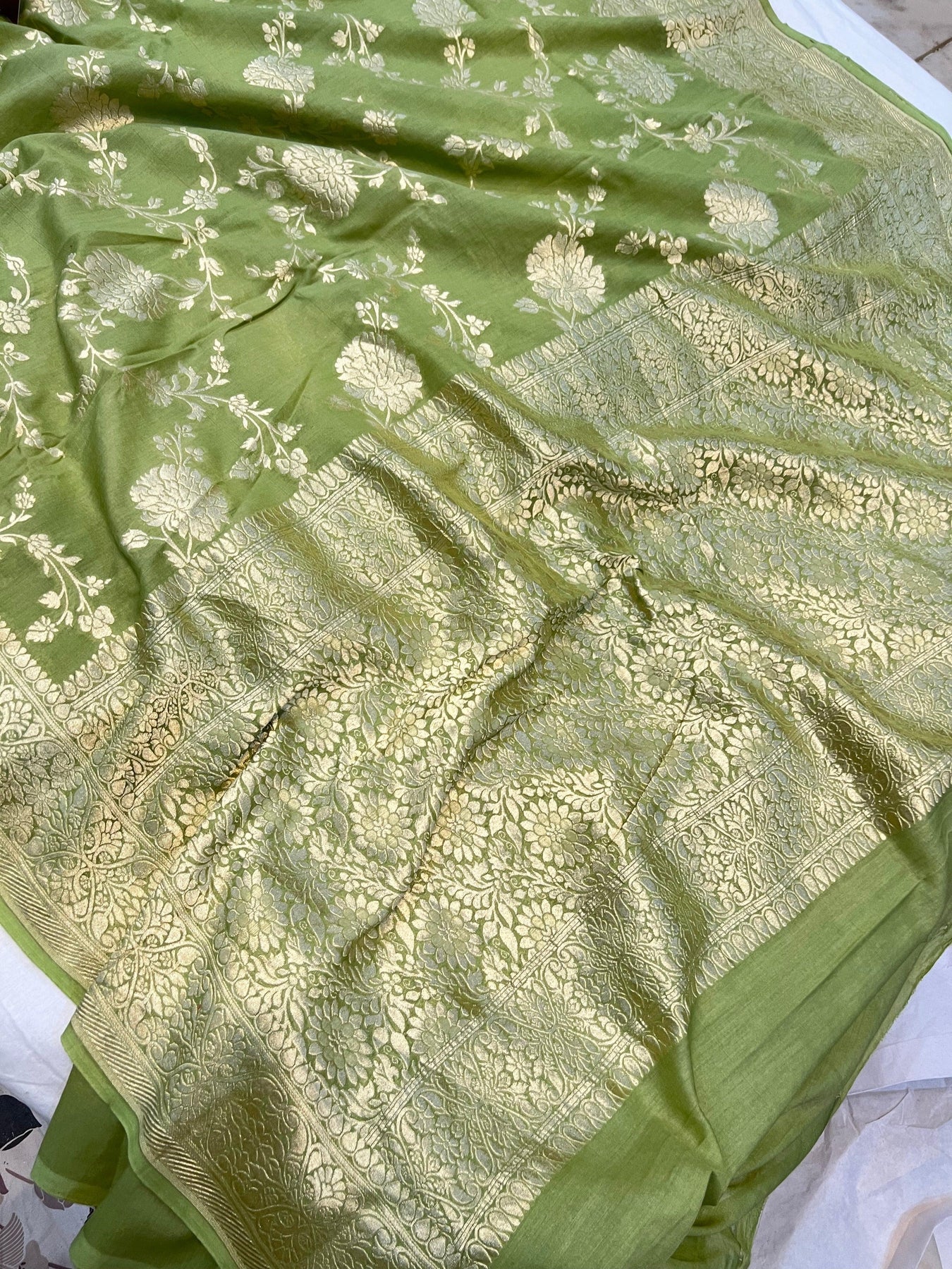 Pista Green Banarasi Handloom Pure Moonga Georgette Saree