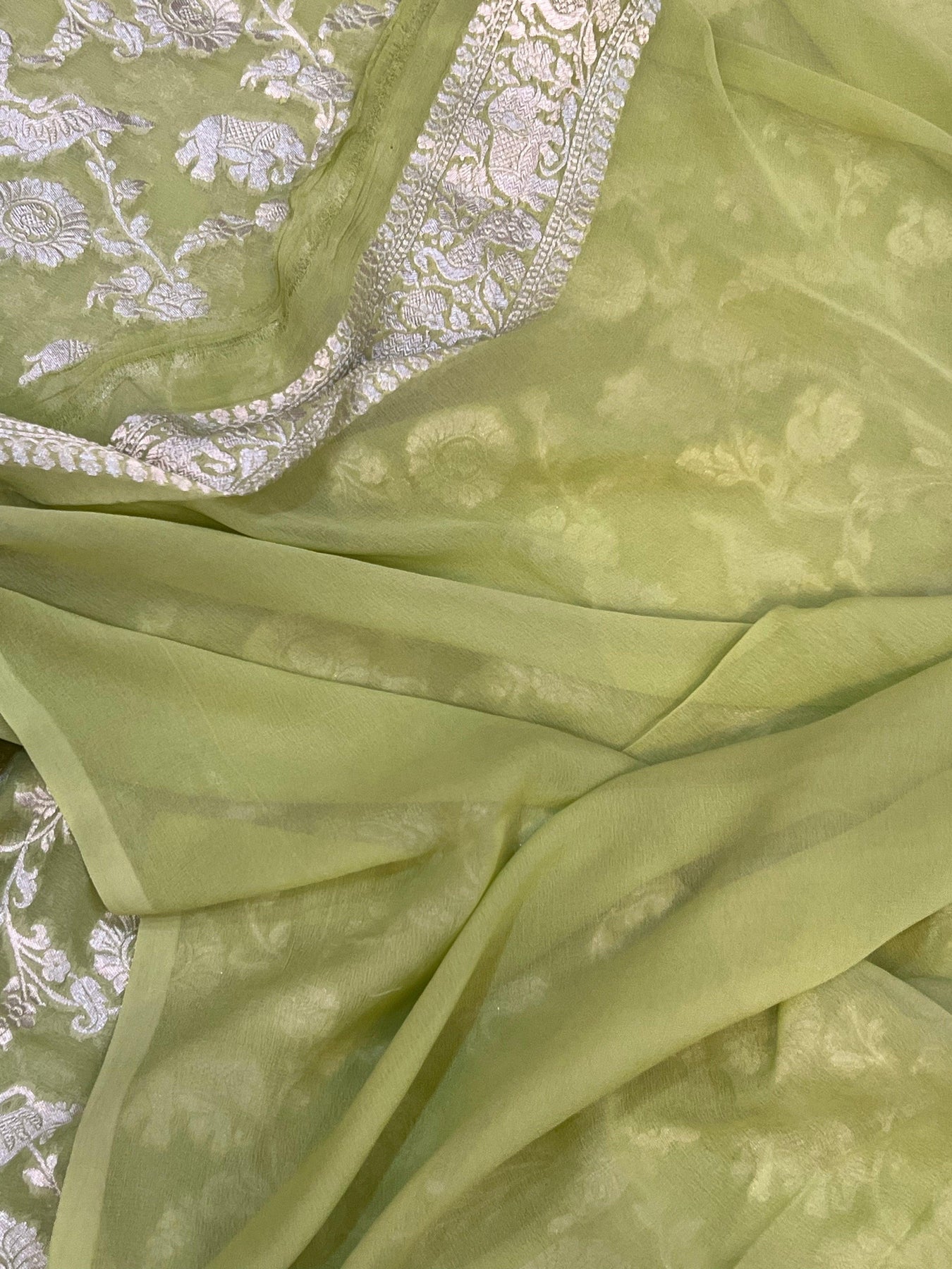 Pista Green Pure Banarasi Khaddi Georgette Saree