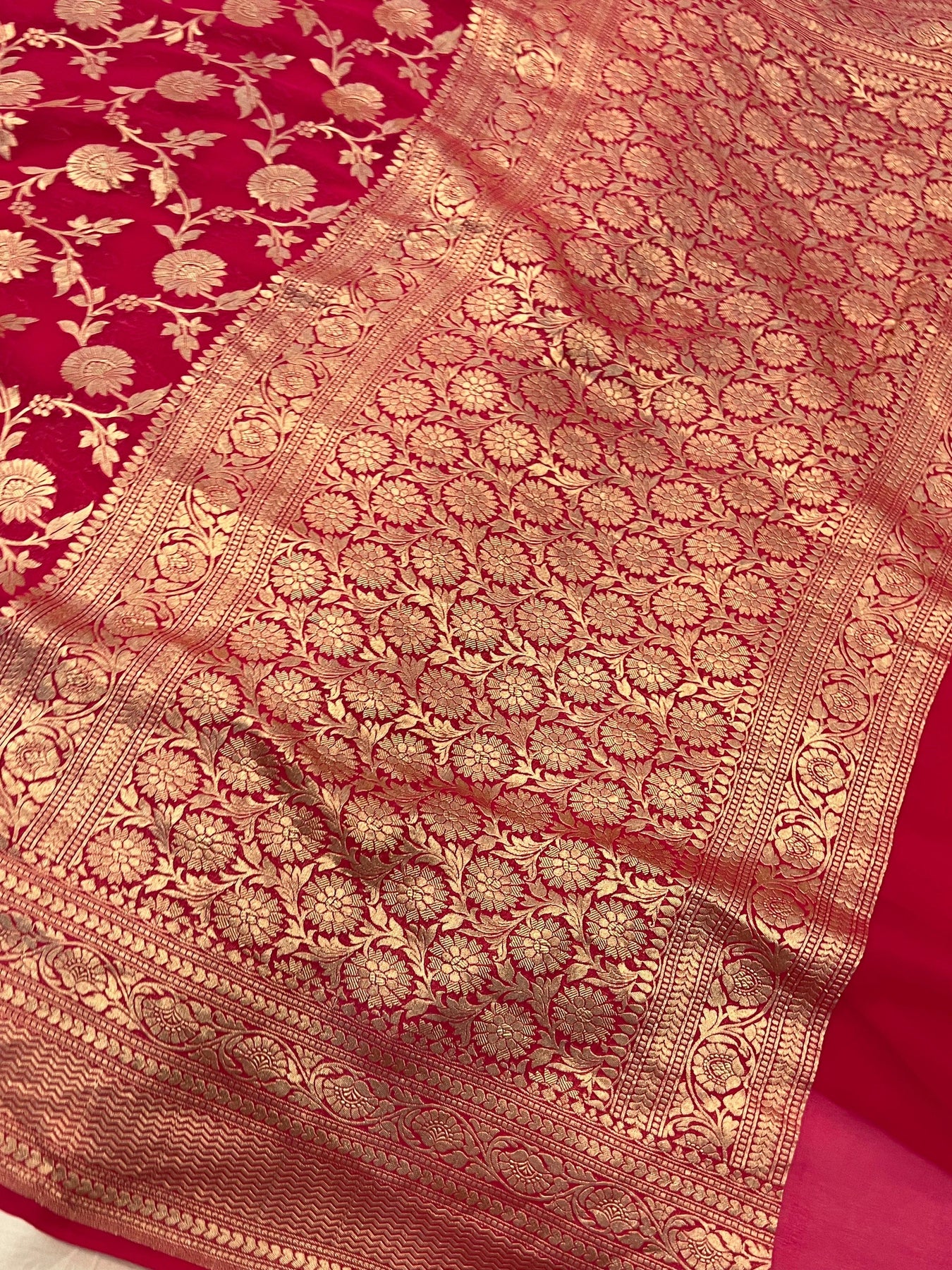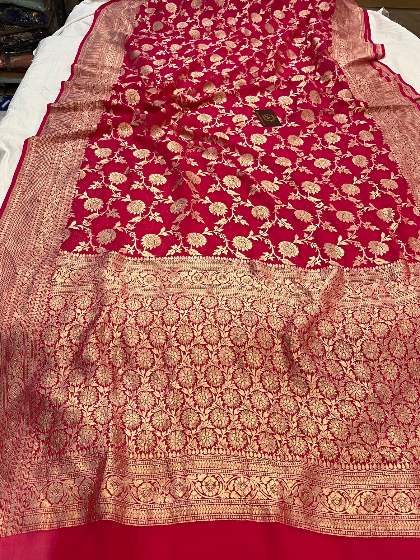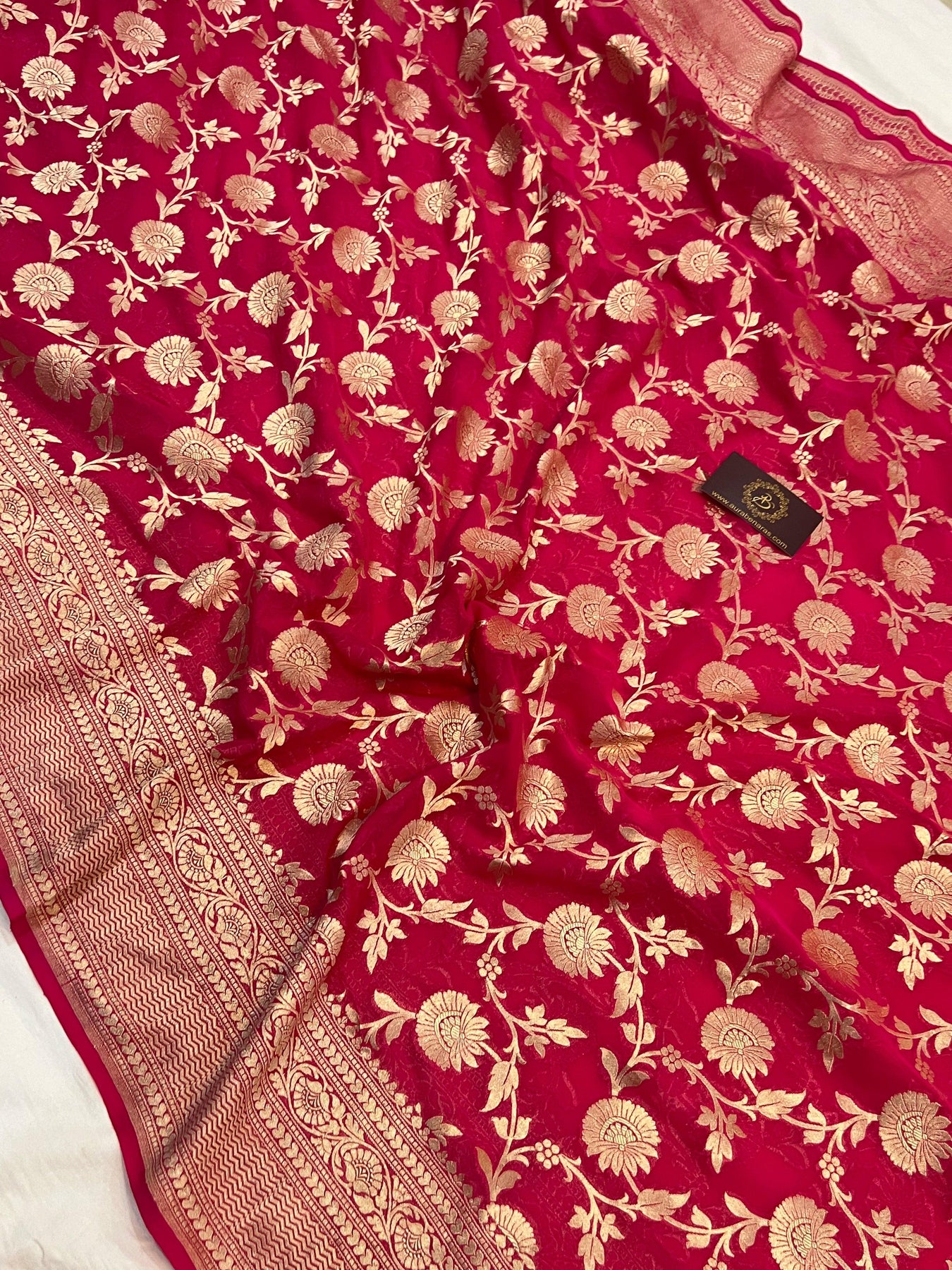 Rani Pink Pure Banarasi Handloom Khaddi Georgette Saree