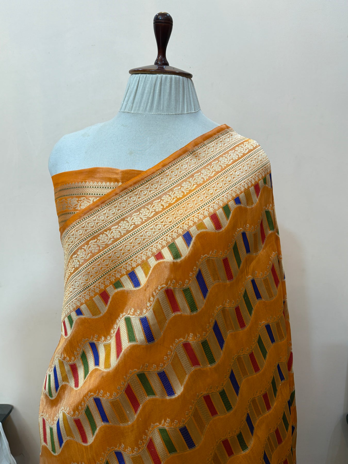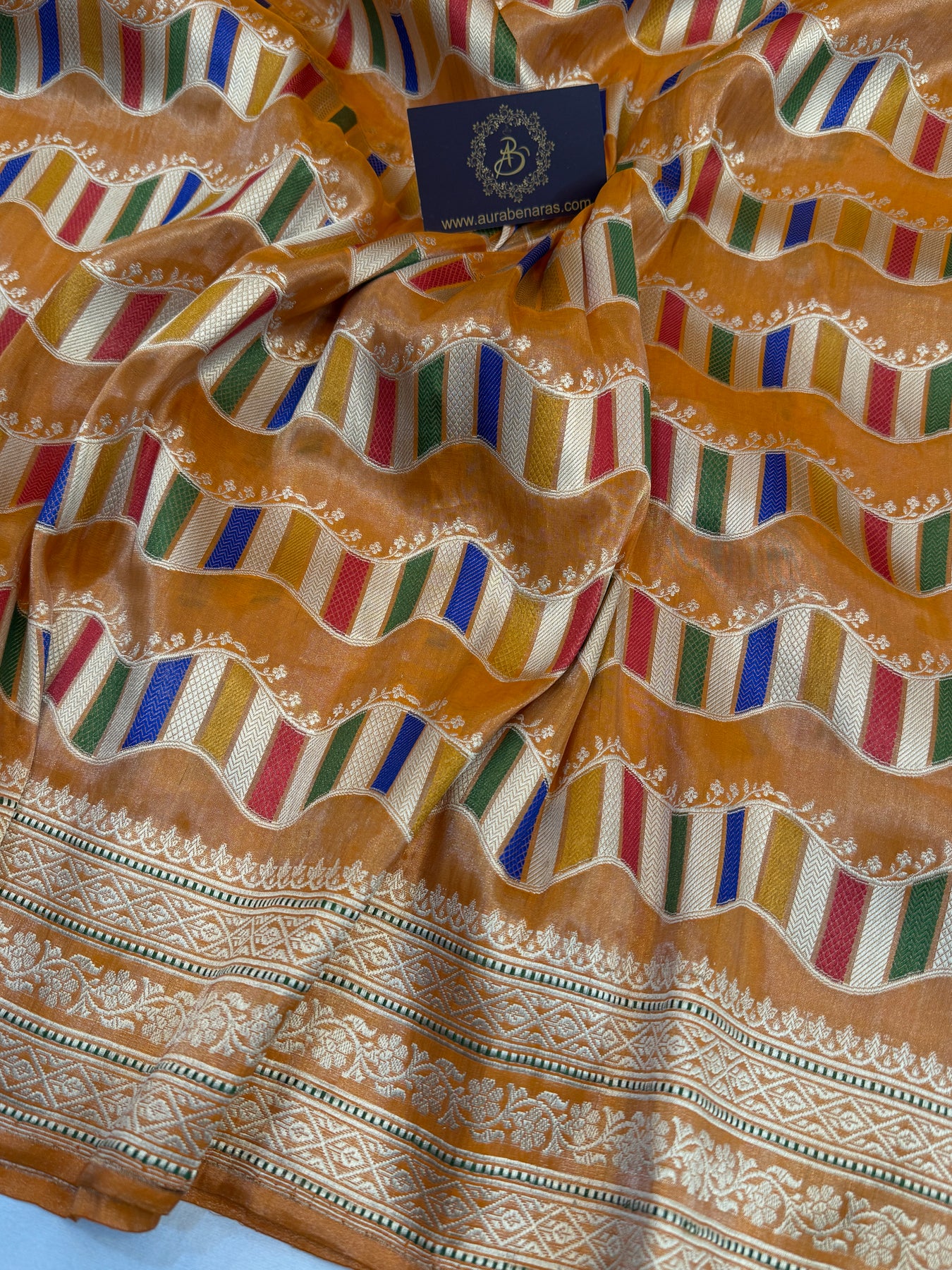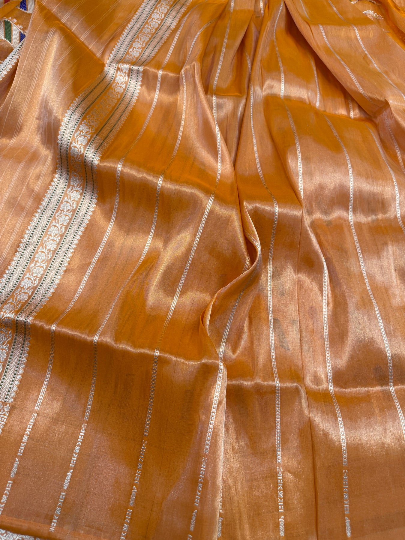 Orange Pure Katan Tissue Silk Handloom Banarasi Saree