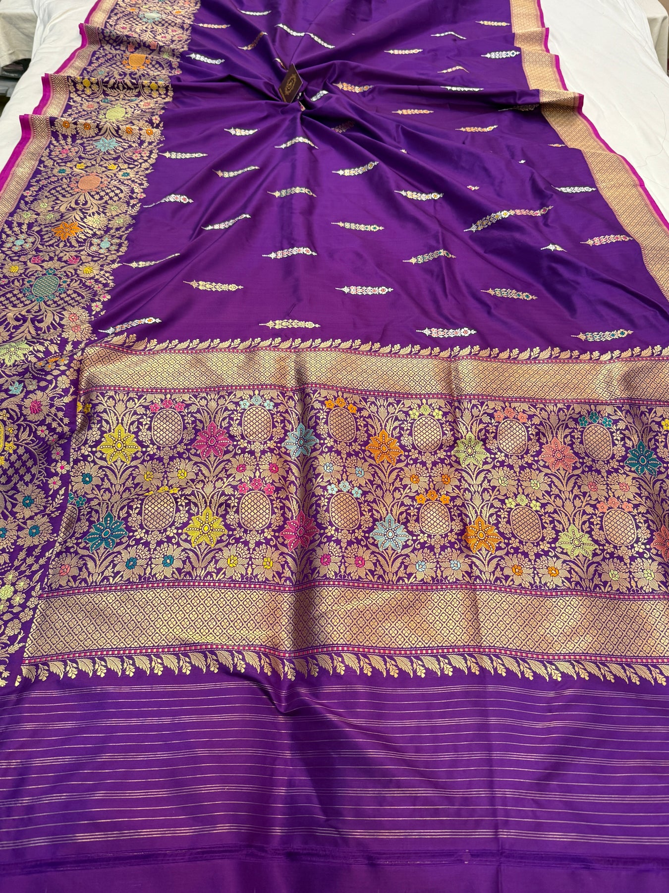 Purple Pure Katan Silk Handloom Banarasi Saree