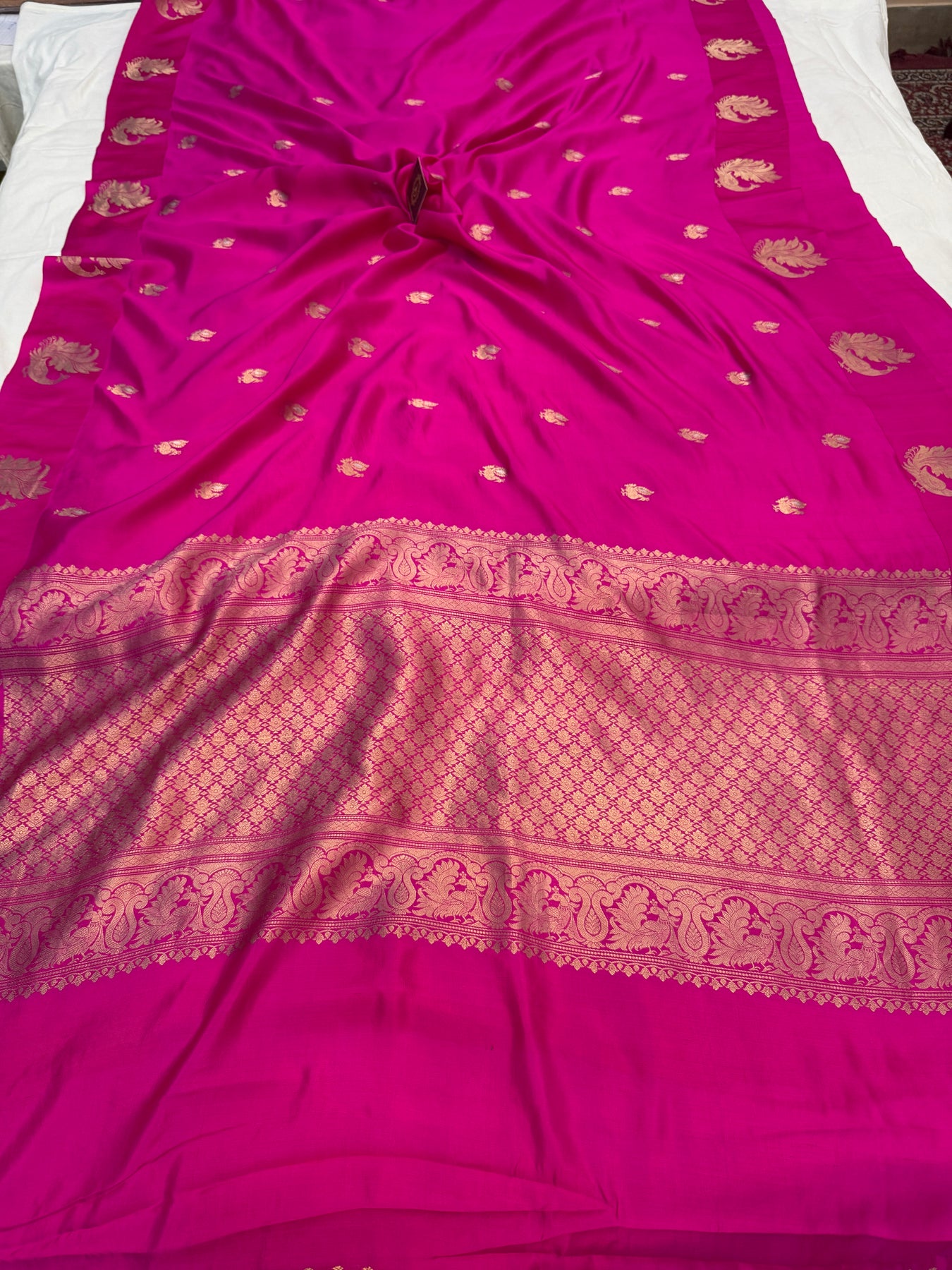 Rani Pink Pure Silk Handloom Banarasi Saree