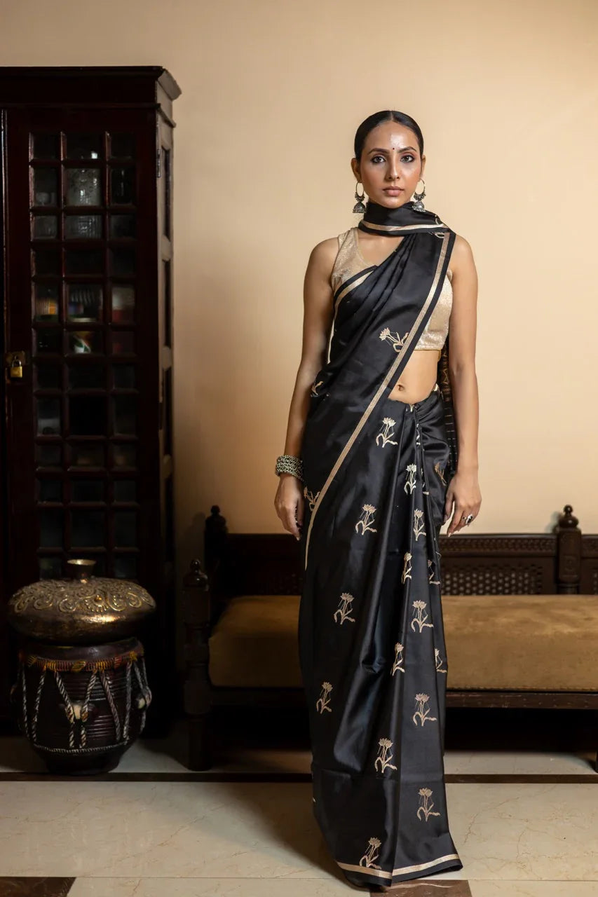 Black Pure Banarasi Handloom Mashru Silk Saree
