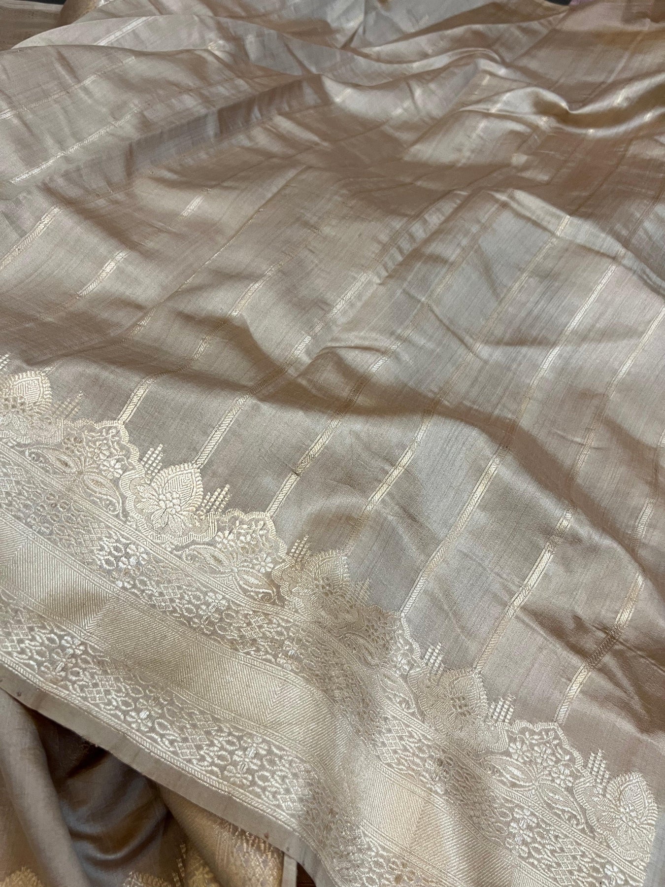 Beige Pure Chiniya Silk Handloom Banarasi Saree