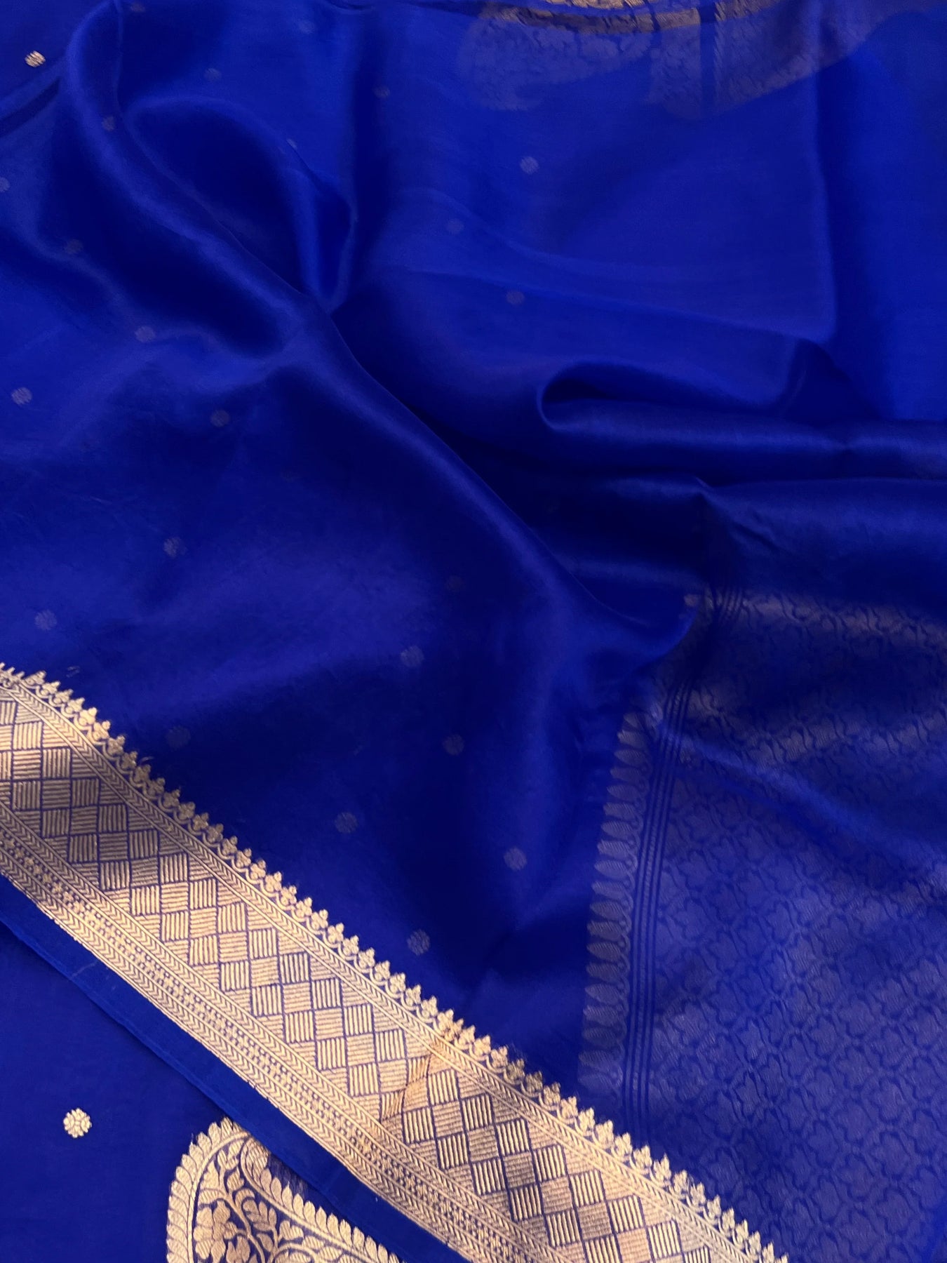 Pre Order :: Royal Blue Pure Kora Silk Handloom Banarasi Saree with Kadhwa Buti & Border