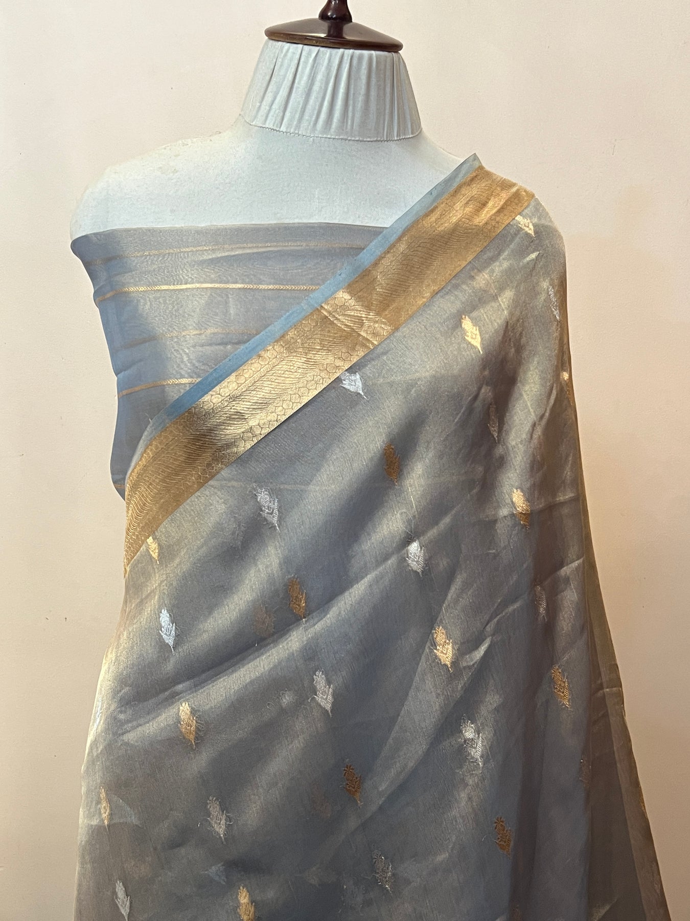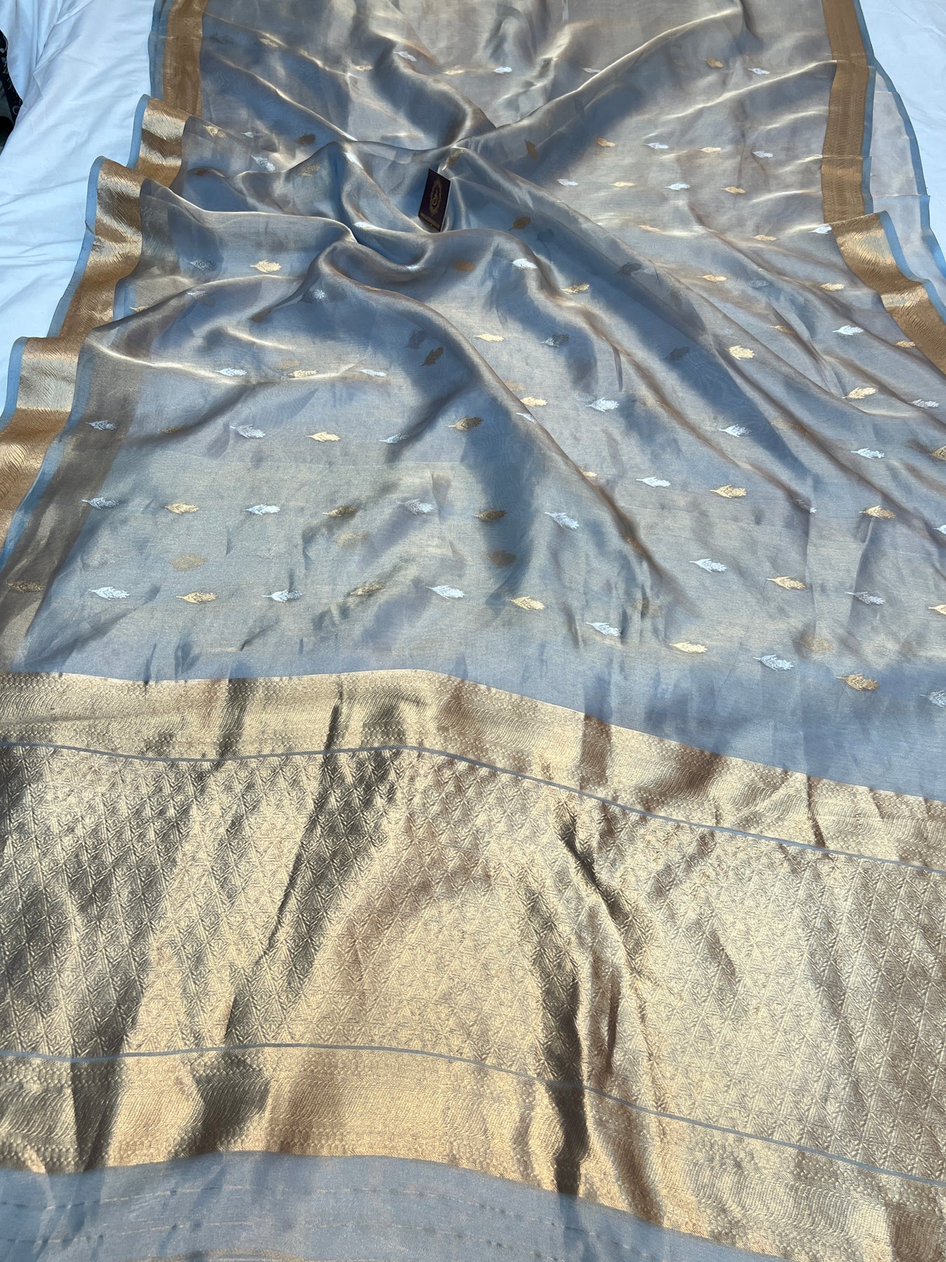 Blue Pure Tissue Silk Handloom Banarasi Saree