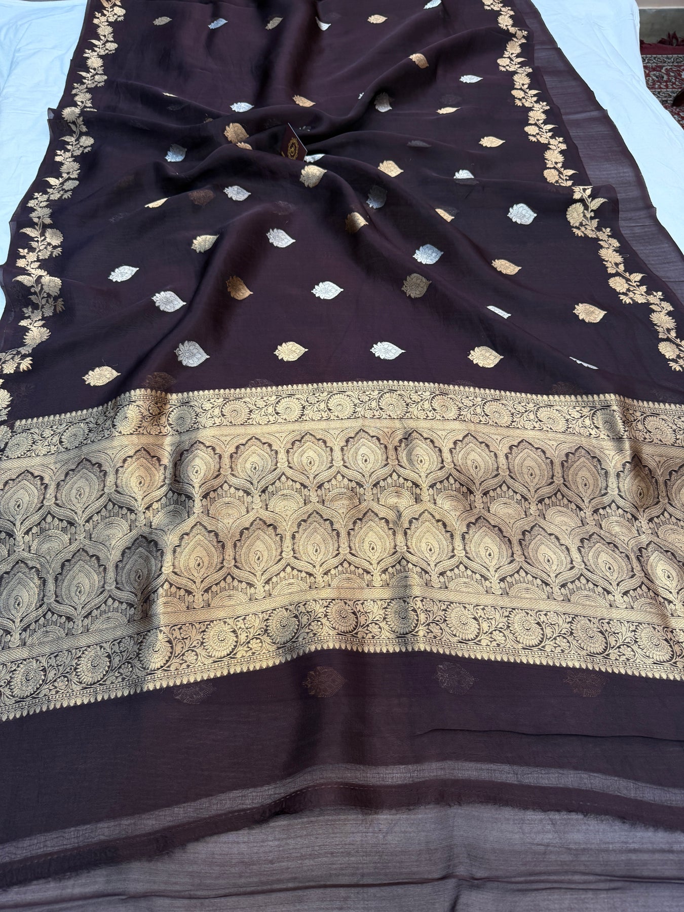 - Color - Brown Banarasi saree.