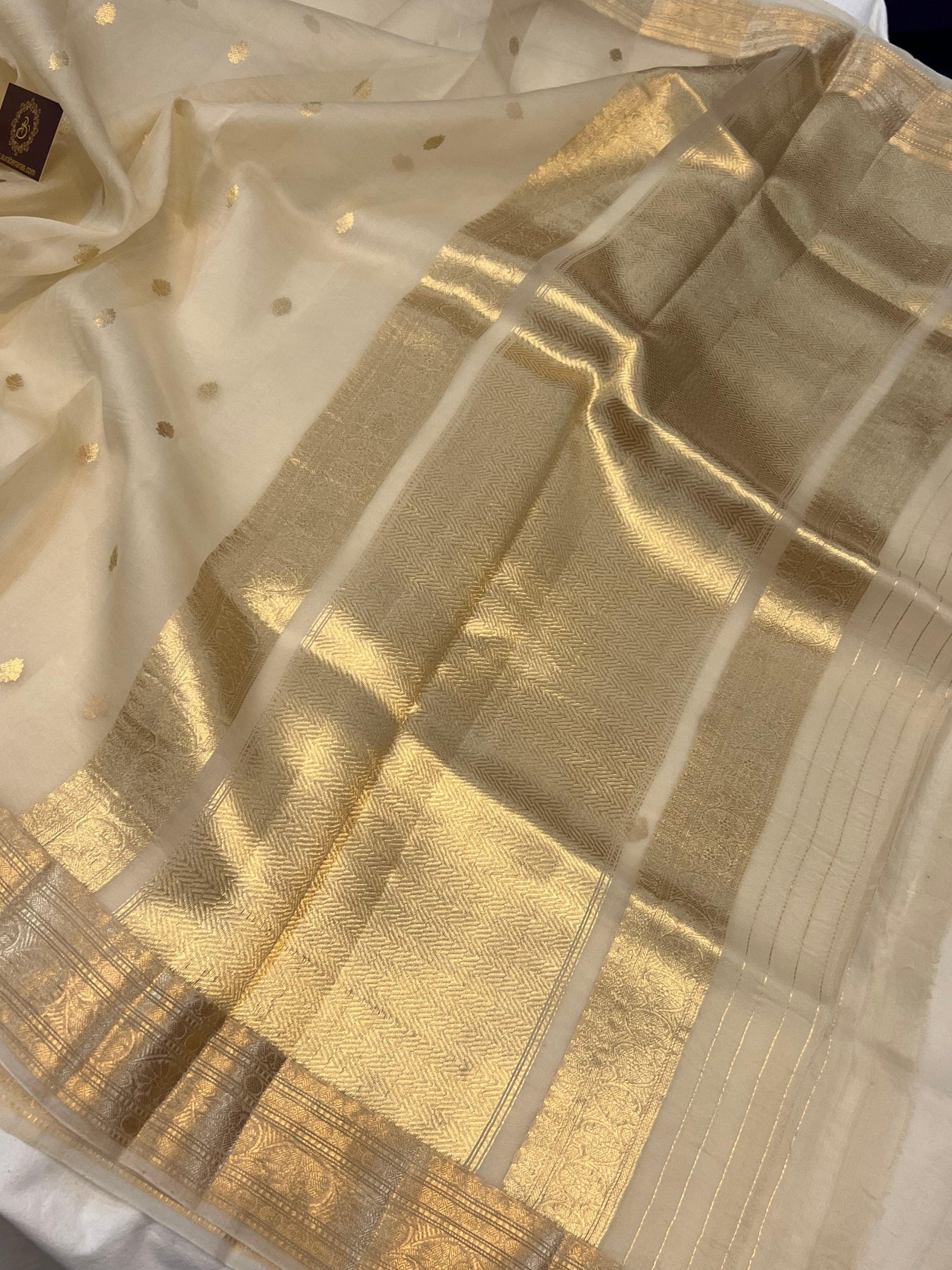 Cream Banarasi Handloom Kora Silk Saree - Aura Benaras