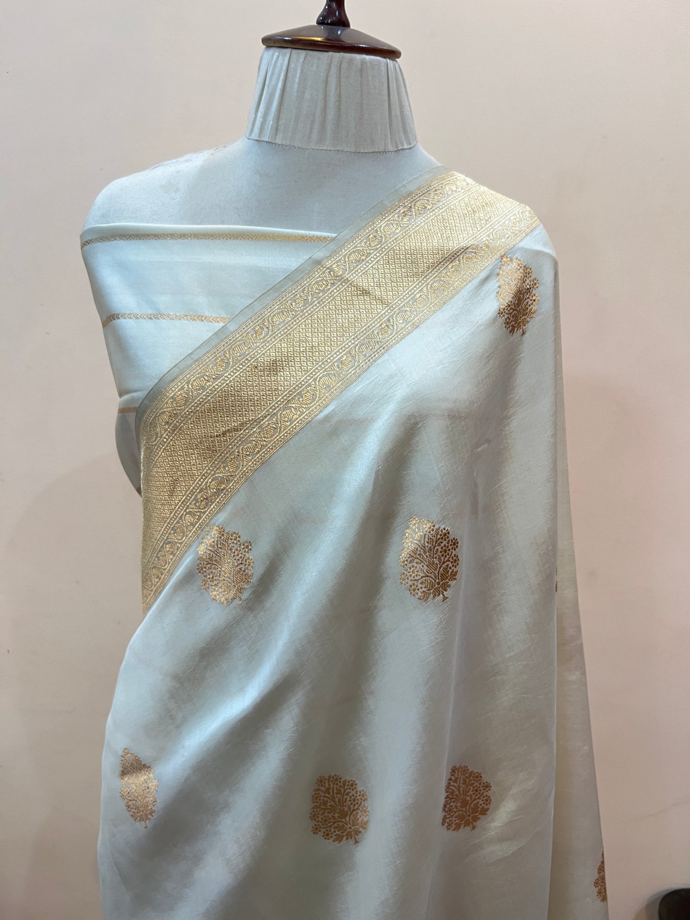 • Color - Cream Banarasi saree.