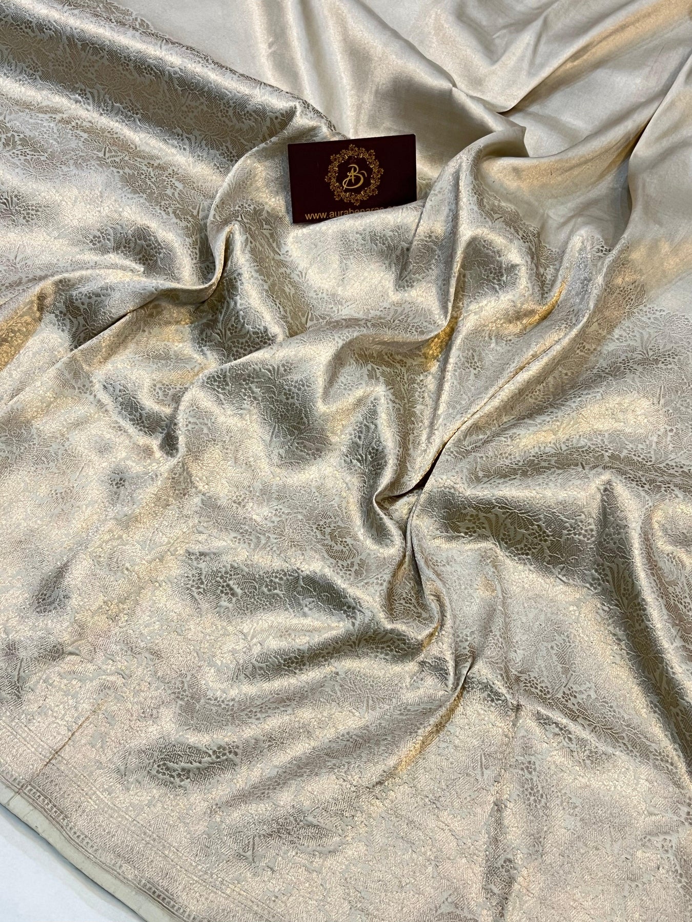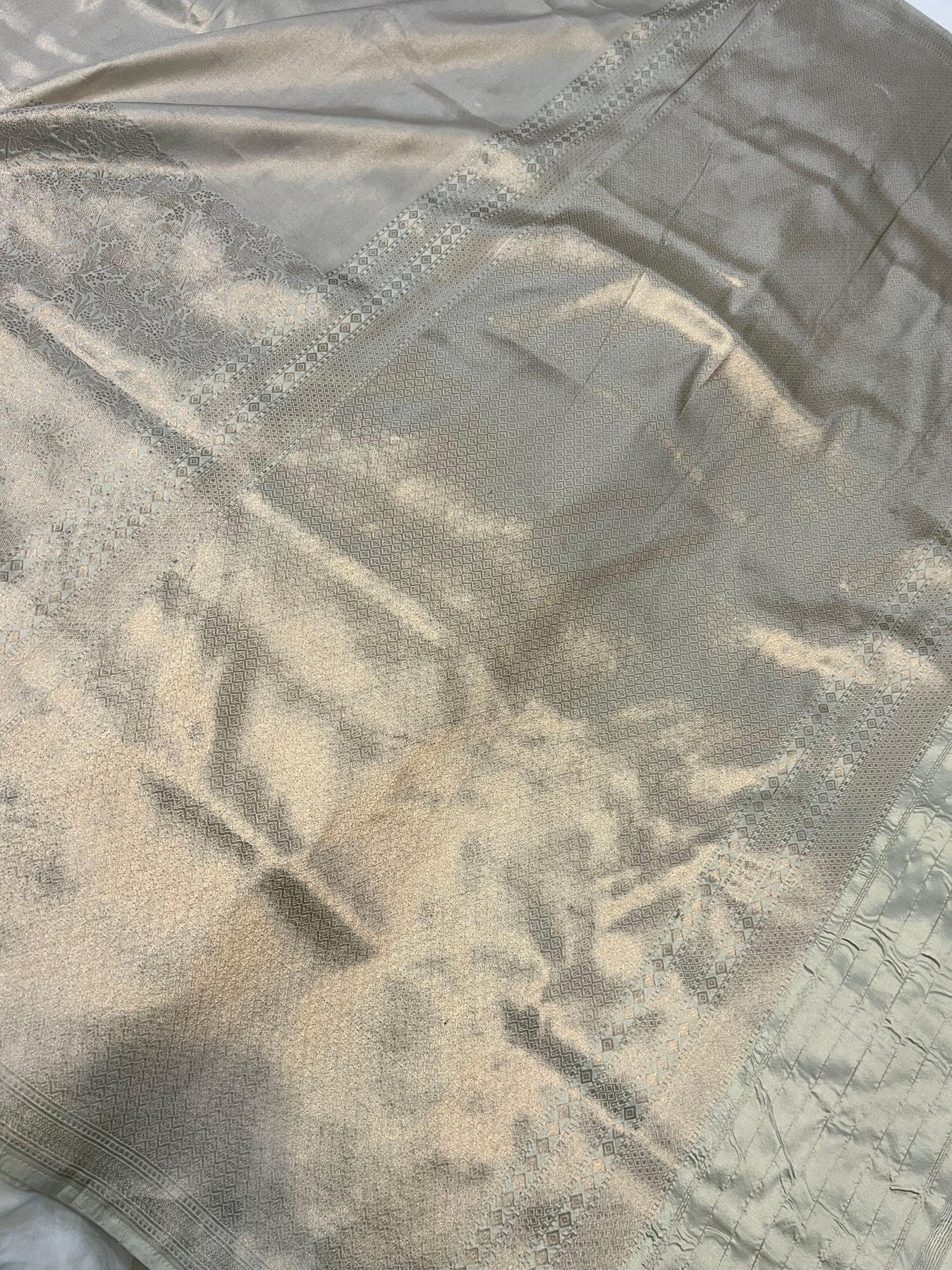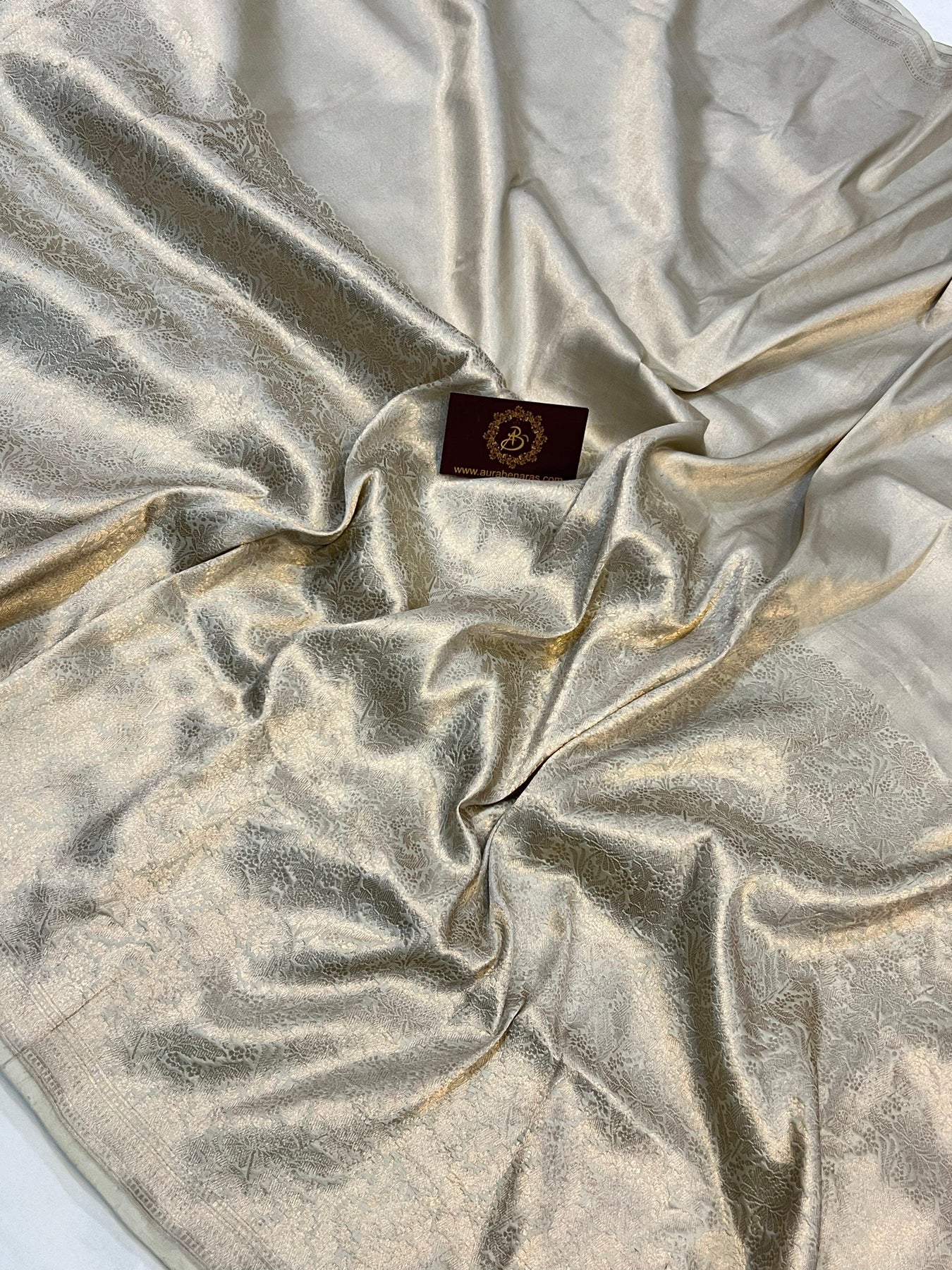 Experience the timeless elegance of this pure Katan silk handloom Banarasi saree, featuring exquisite allover brocade work that seamlessly blends classic charm with modern simplicity. The saree is adorned with a lovely floral design in the lower half, while the upper half remains plain, creating a balanced and sophisticated look. A traditional Banarasi border woven with golden zari frames the saree beautifully, adding an extra touch of luxury and heritage. Paired with a plain blouse piece, this versatile and elegant saree is perfect for weddings, festivals, and grand celebrations, reflecting the rich legacy of Banarasi craftsmanship.