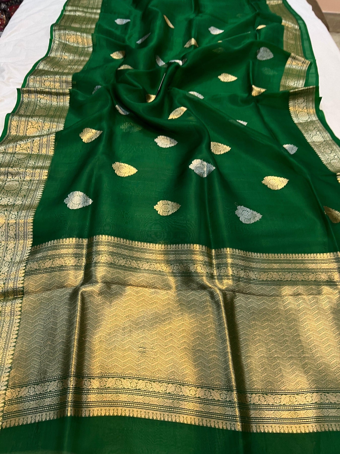 Dark Green Banarasi Handloom Kora Silk Saree
