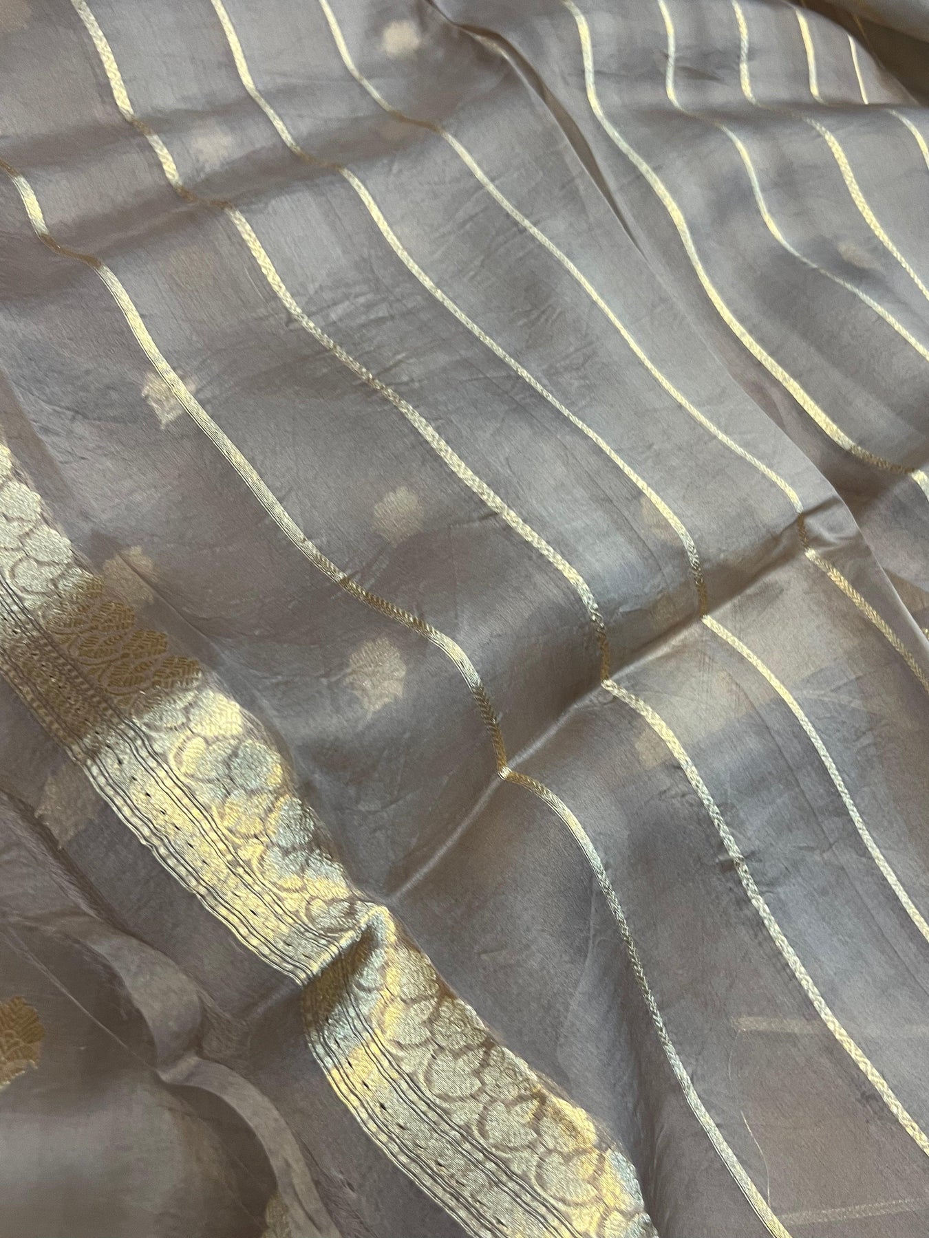 Grey Banarasi Handloom Kora Silk Saree - Aura Benaras