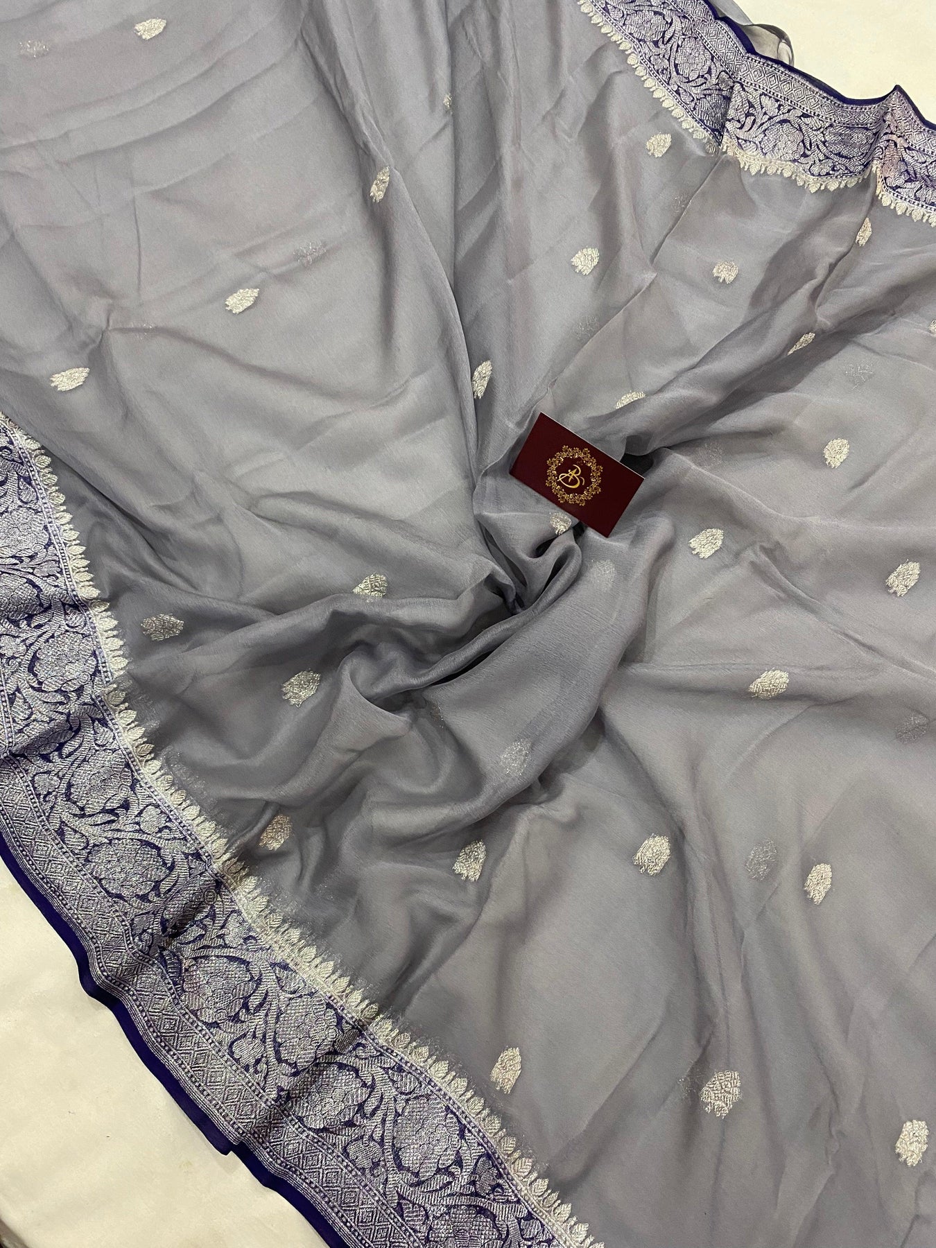 Grey Khaddi Chiffon Banarasi Handloom Saree
