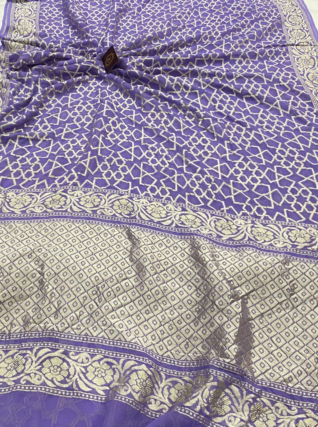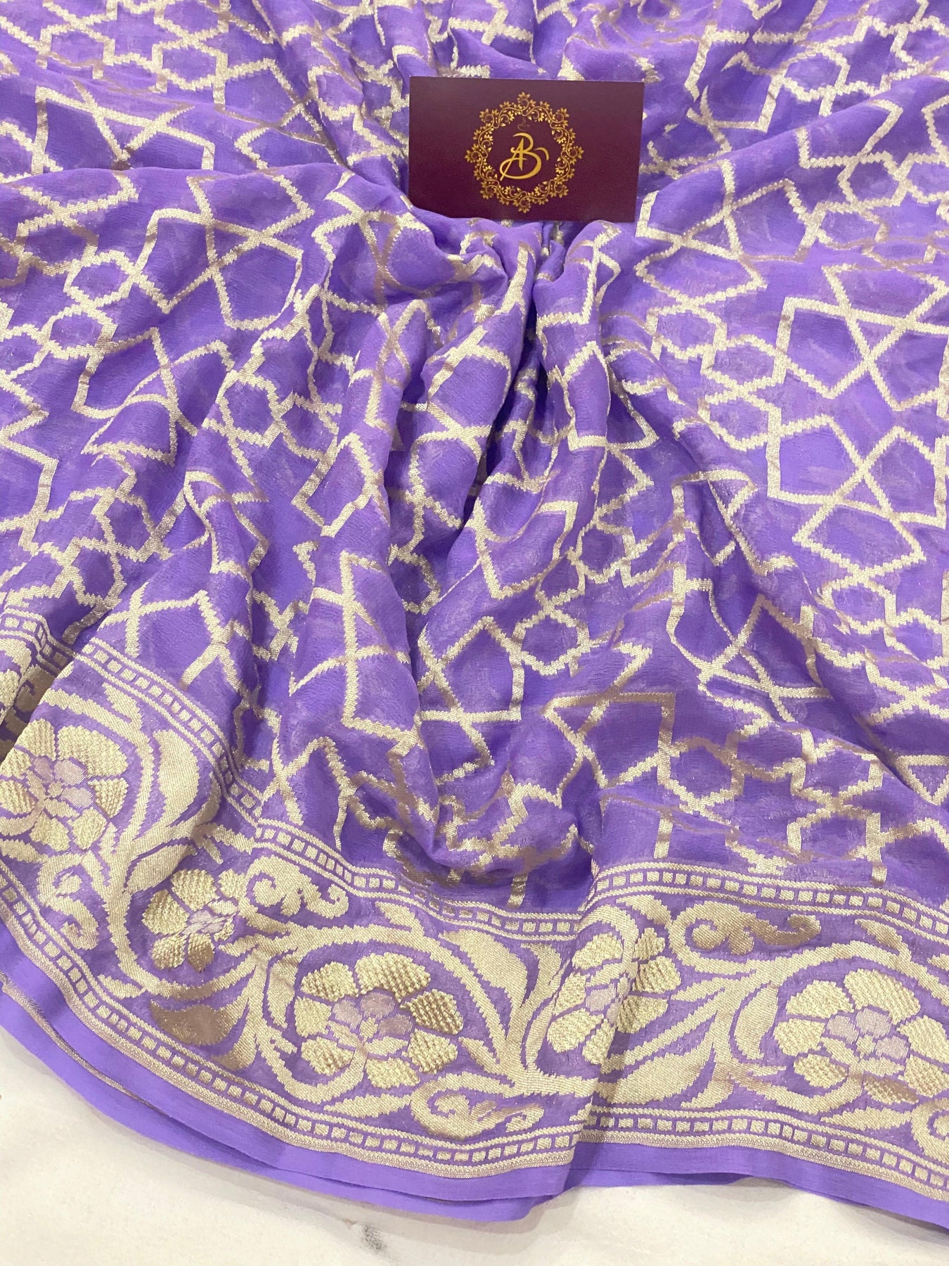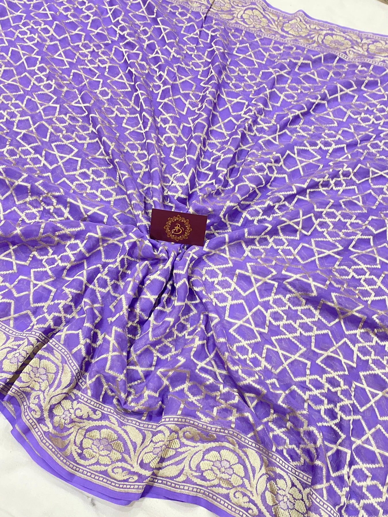 Lavender Pure Banarasi Khaddi Georgette Saree