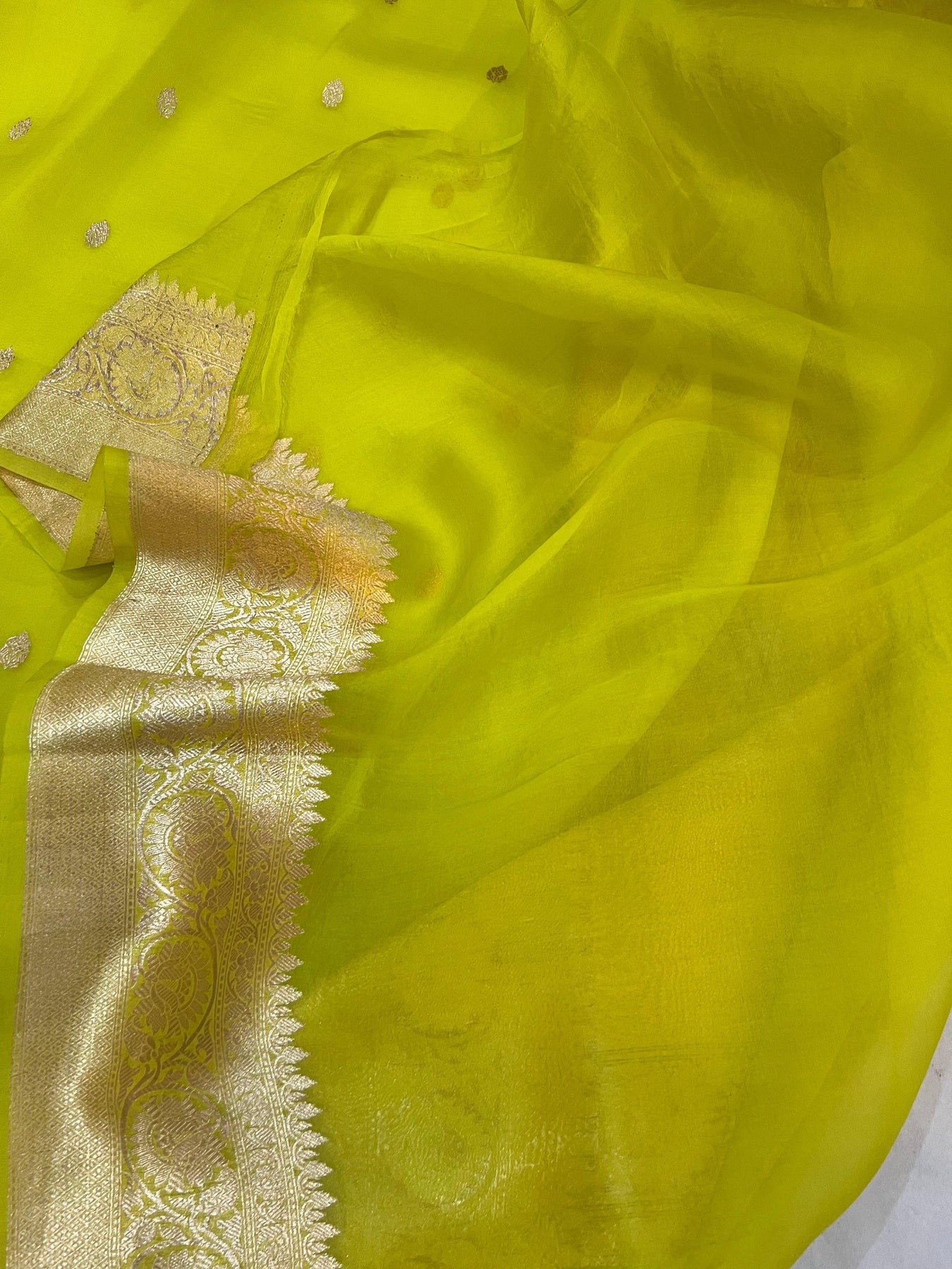 Lemon Yellow Banarasi Handloom Kora Silk Saree