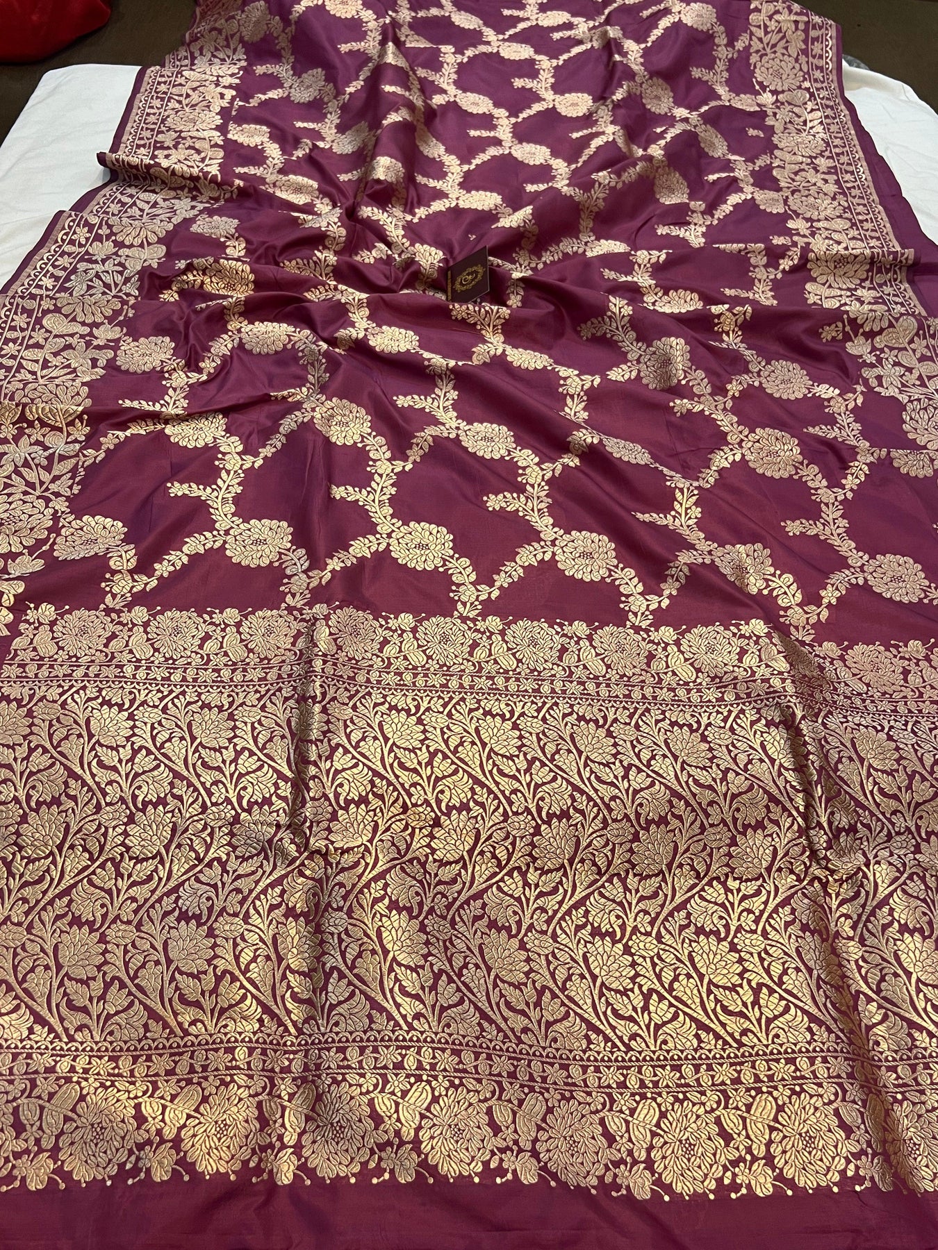 Light Plum floral jaal Pure Katan silk Handloom Banarasi Saree