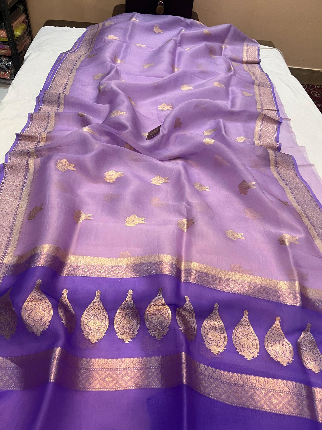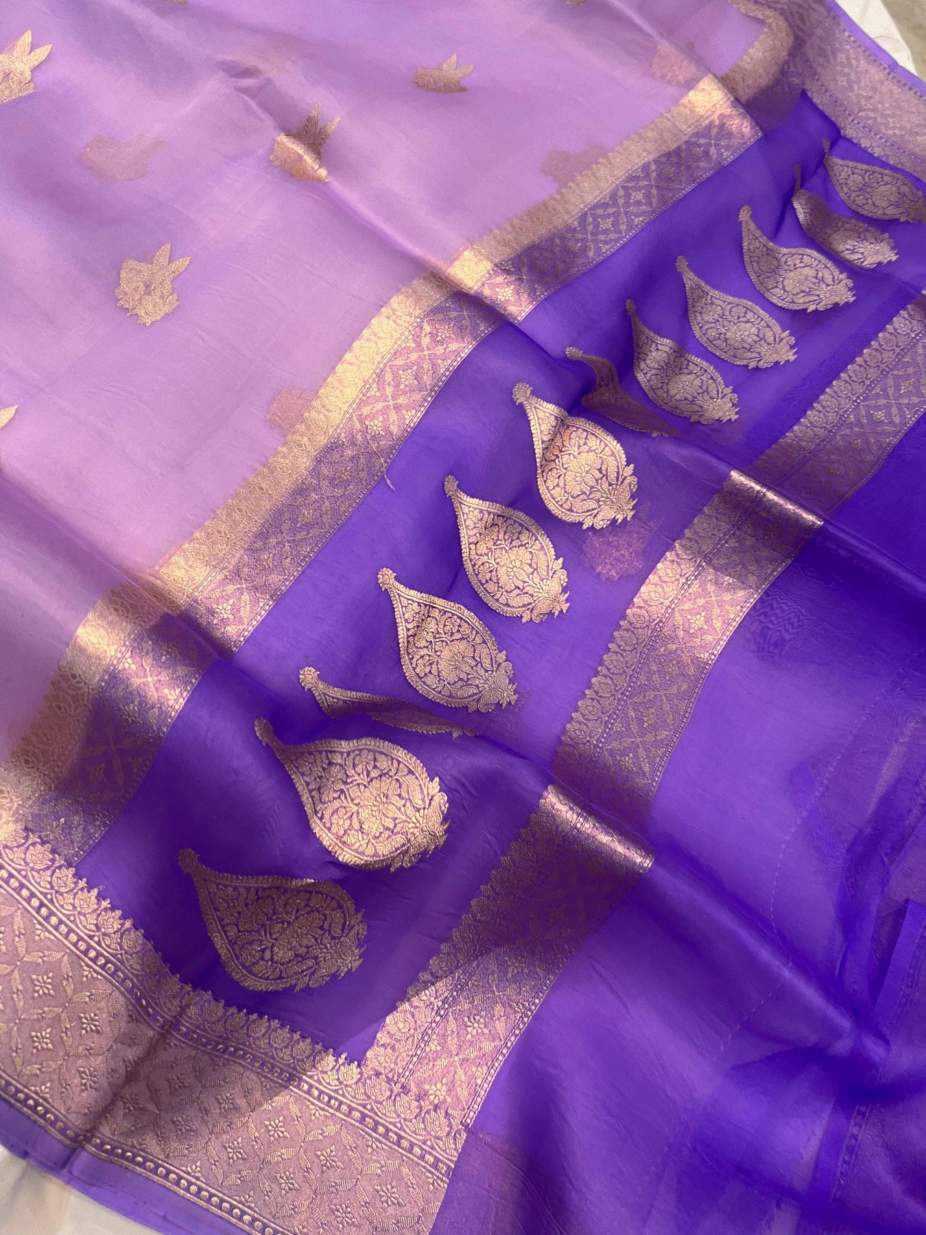 Lilac Banarasi Handloom Kora Silk Saree - Aura Benaras