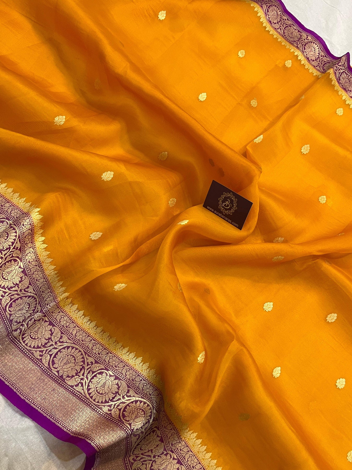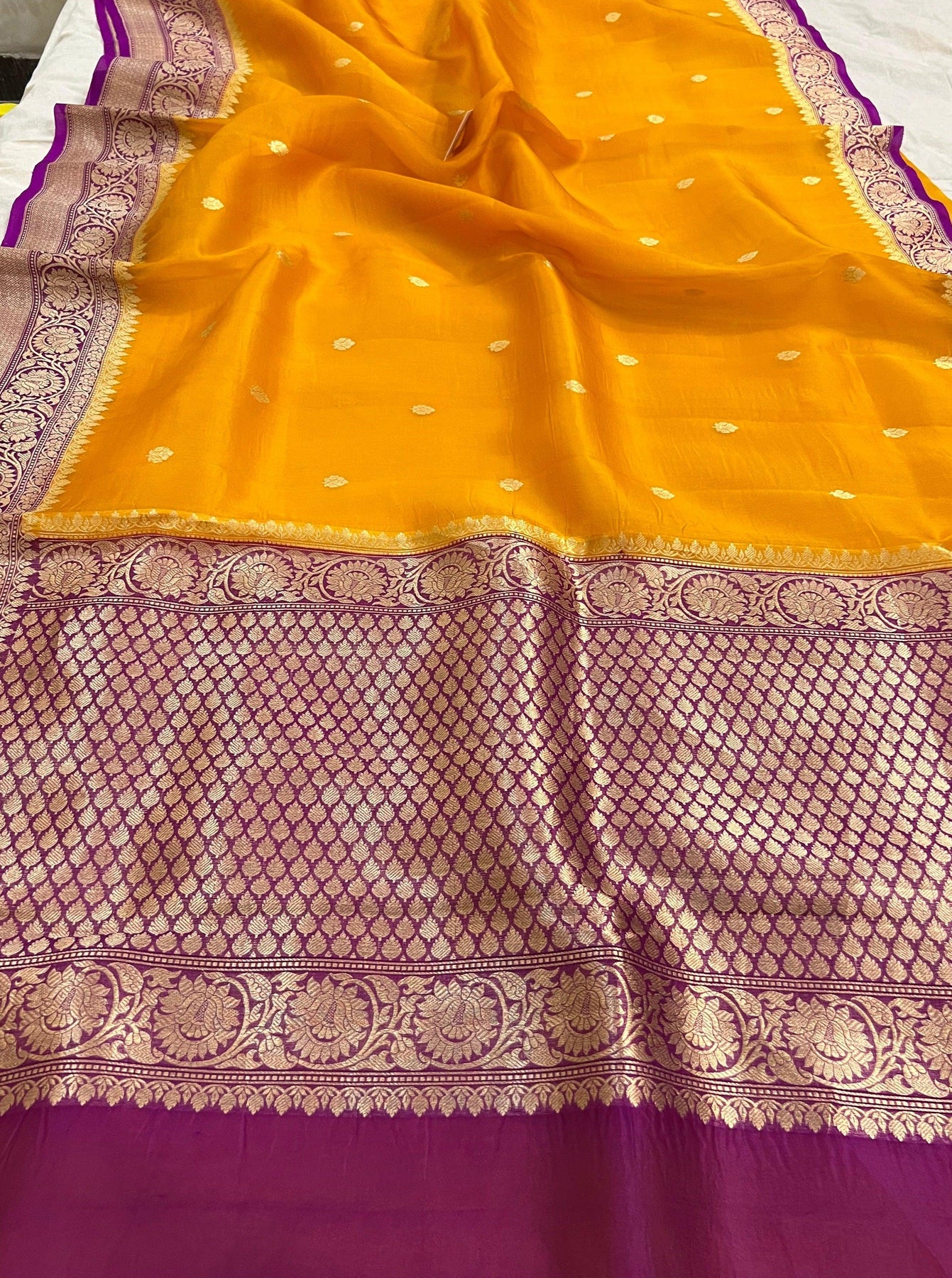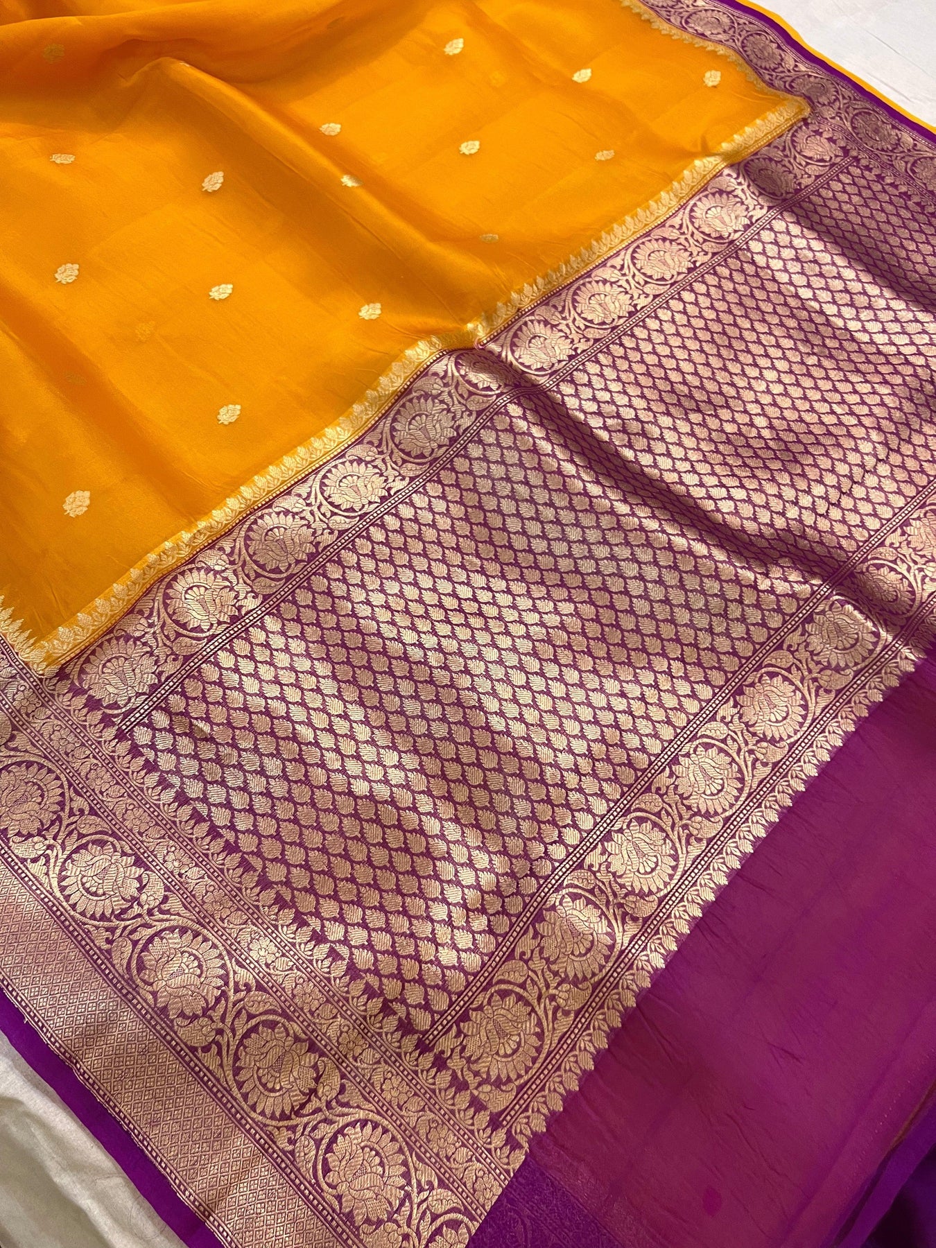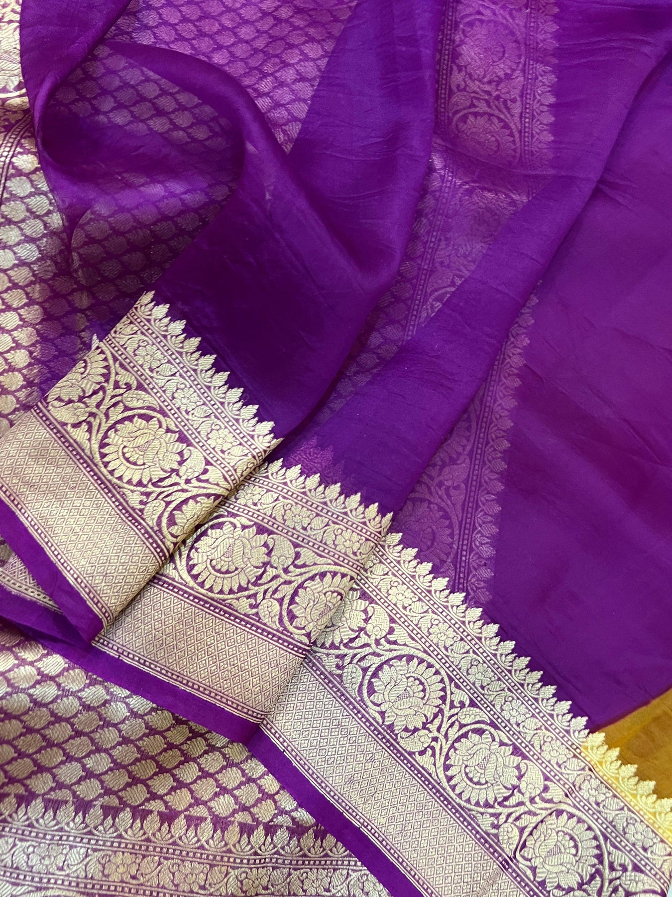 Mustard Yellow Banarasi Handloom Kora Silk Saree