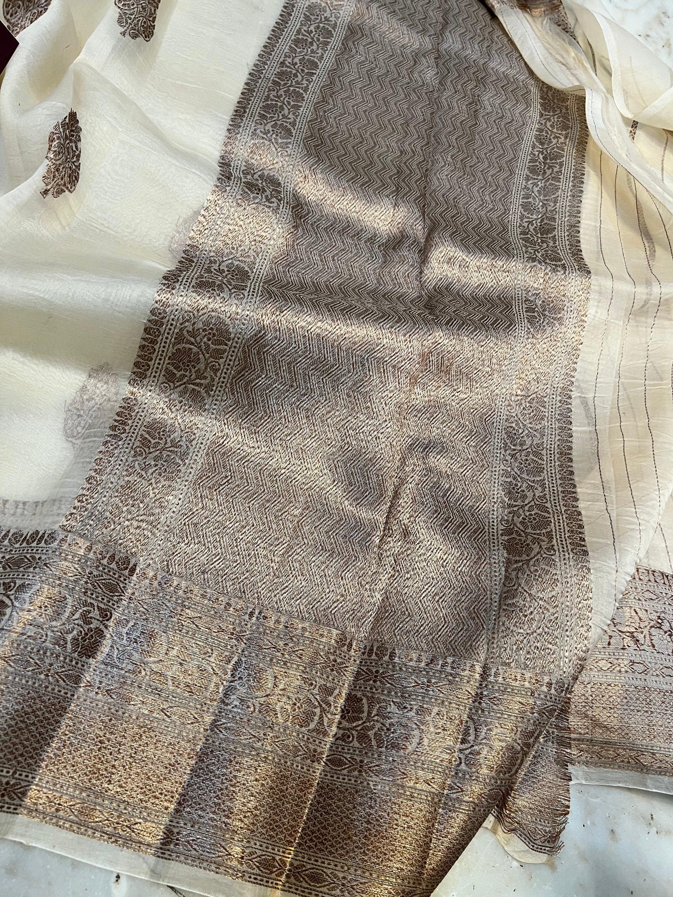 Off White Pure Kora Silk Handloom Banarasi Saree