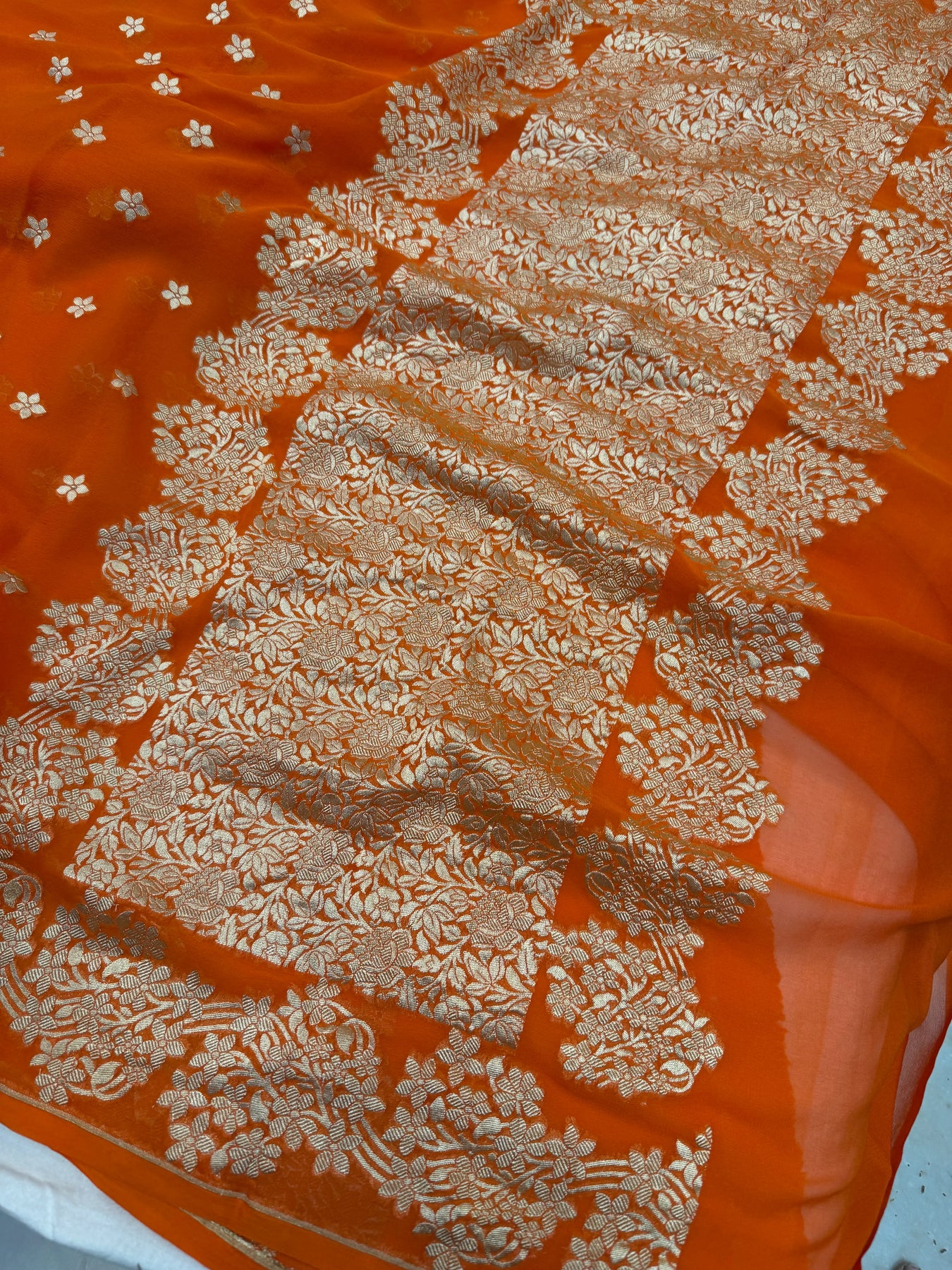 Orange Pure Banarasi Handloom Khaddi Georgette Saree