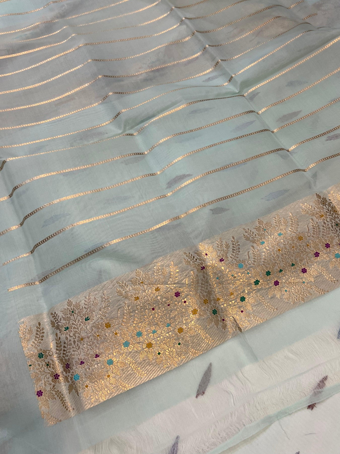 - Keep away from direct sunlight to maintain the color and zari shine.