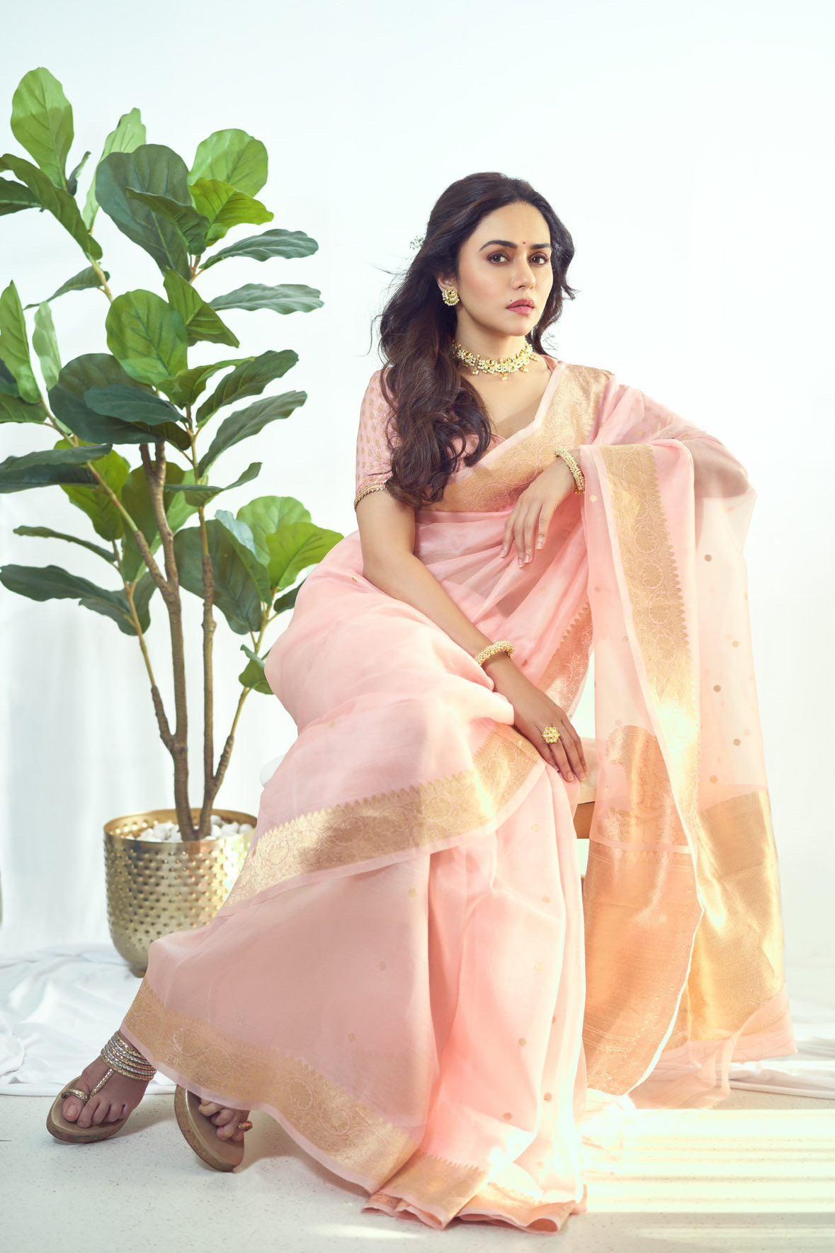 Pre Order :: Pastel Peach Banarasi Handloom Kora Silk Saree