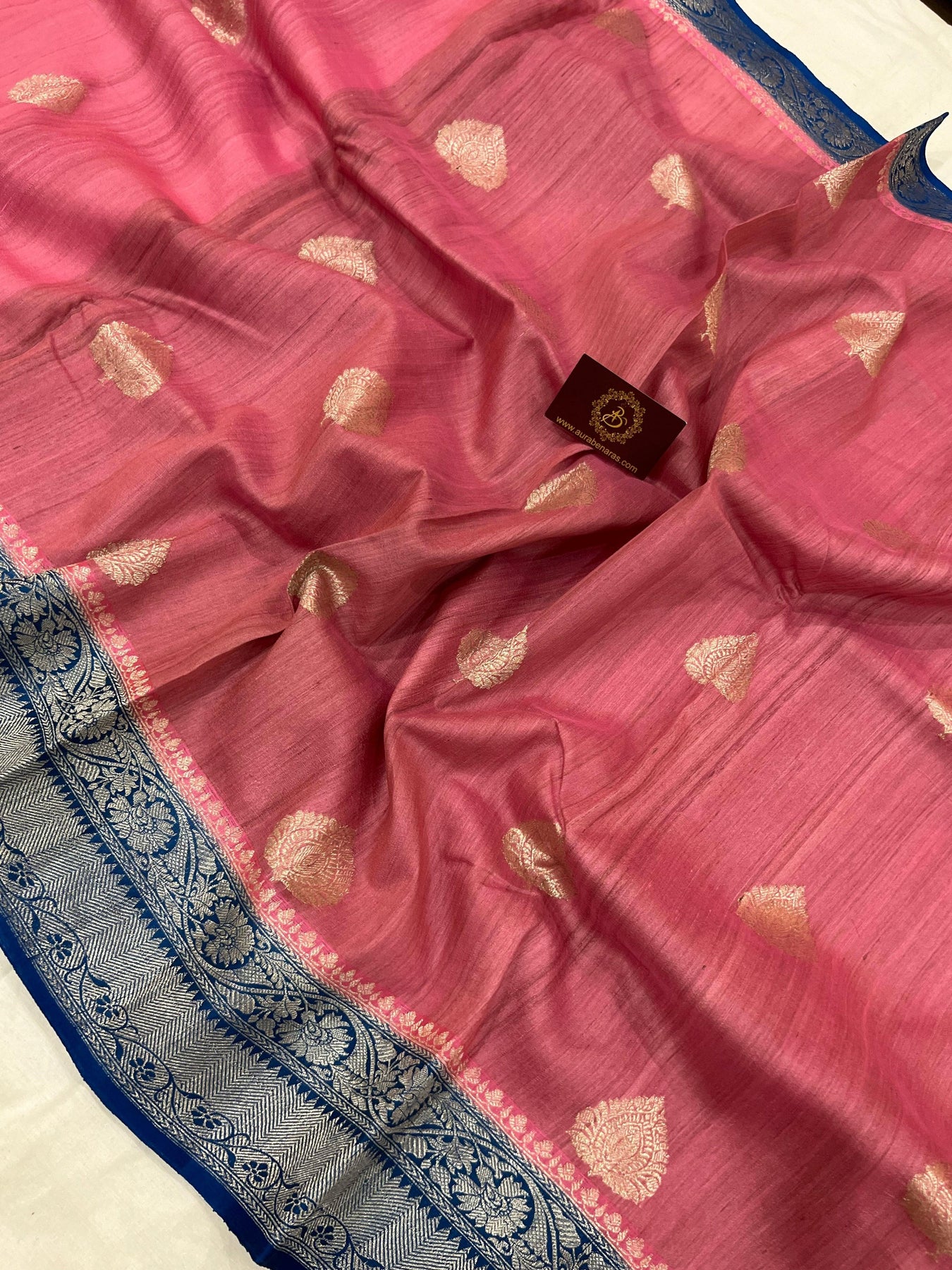 Pastel Pink Banarasi Handloom Pure Tussar Silk Saree