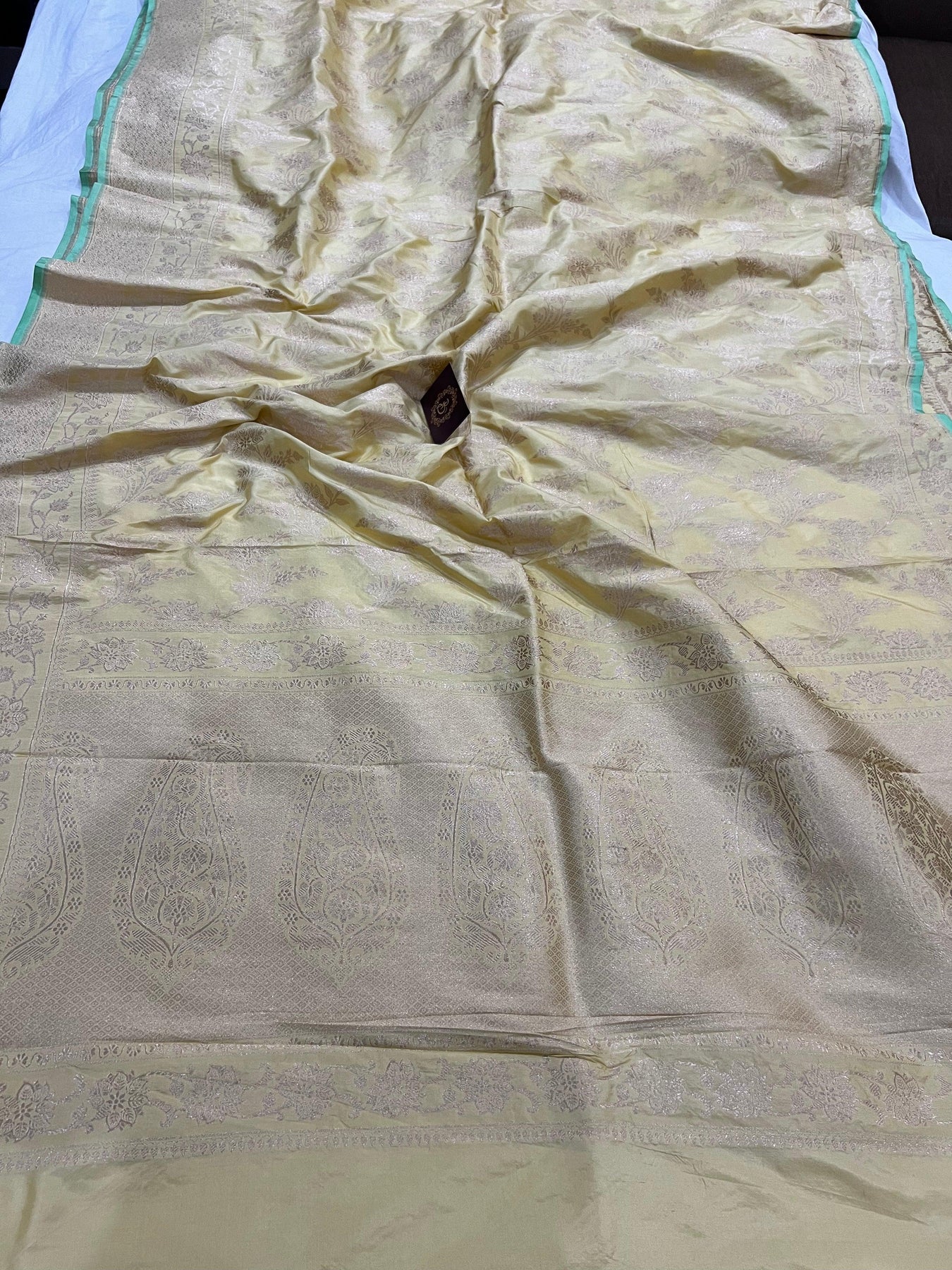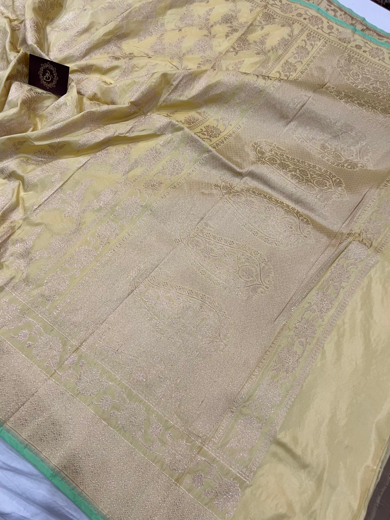Pastel Yellow Pure Banarasi Handloom Katan Silk Saree