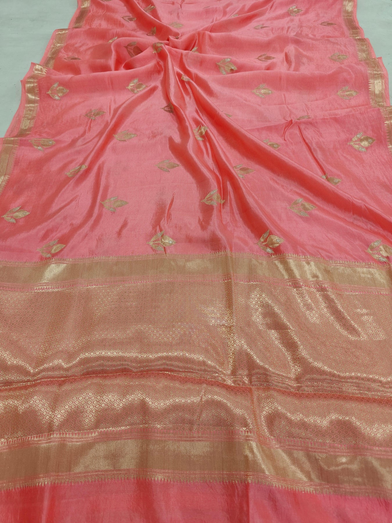 Peach Pure Banarasi Handloom Silk Saree