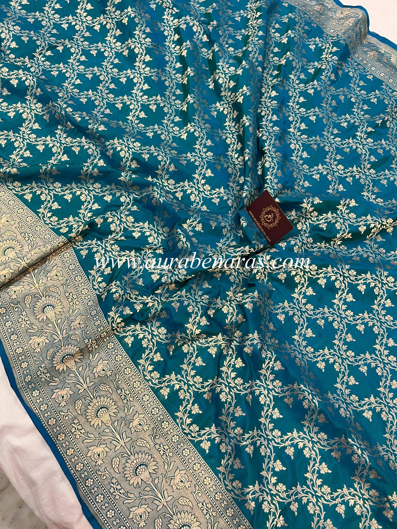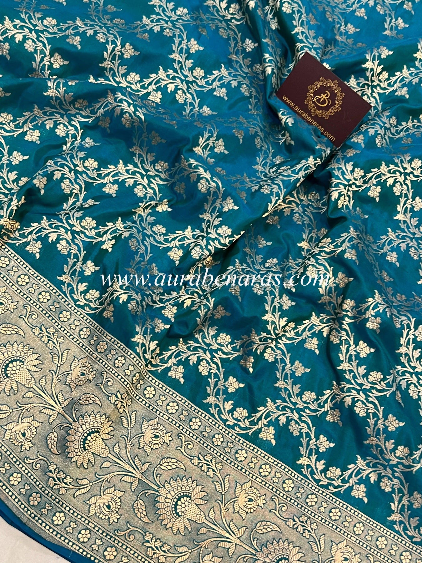 Peacock Blue Pure Banarasi Handloom Katan Silk Saree